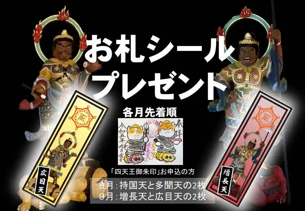 9月の月替わりペット御朱印「四天王」は、正授院に四天王の像が奉納されたことを記念…