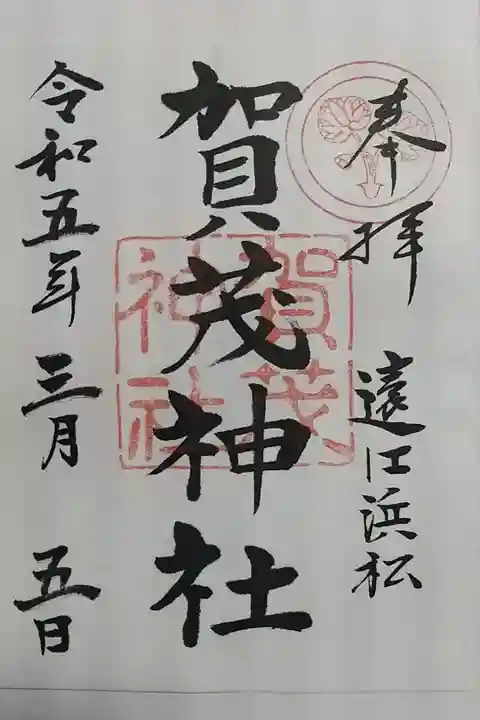 松尾神社からGoogle Mapを頼りに縣居神社を目指したのですが、曲がる所間違えて、賀茂神社に付きました。偶然でしたが、こちらも縣居神社で書置きの御朱印もらえます。