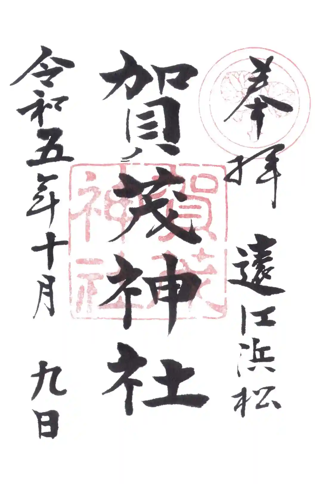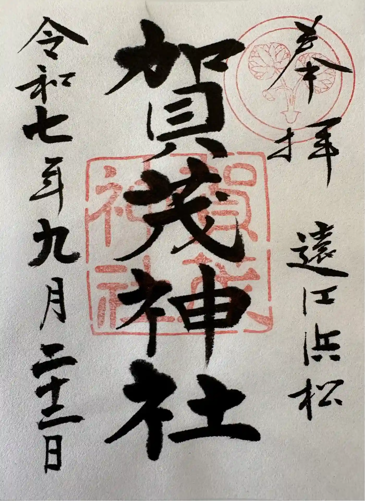 浜松市の賀茂神社です。縣居神社の近くにあり御朱印も縣居神社で頂けます。