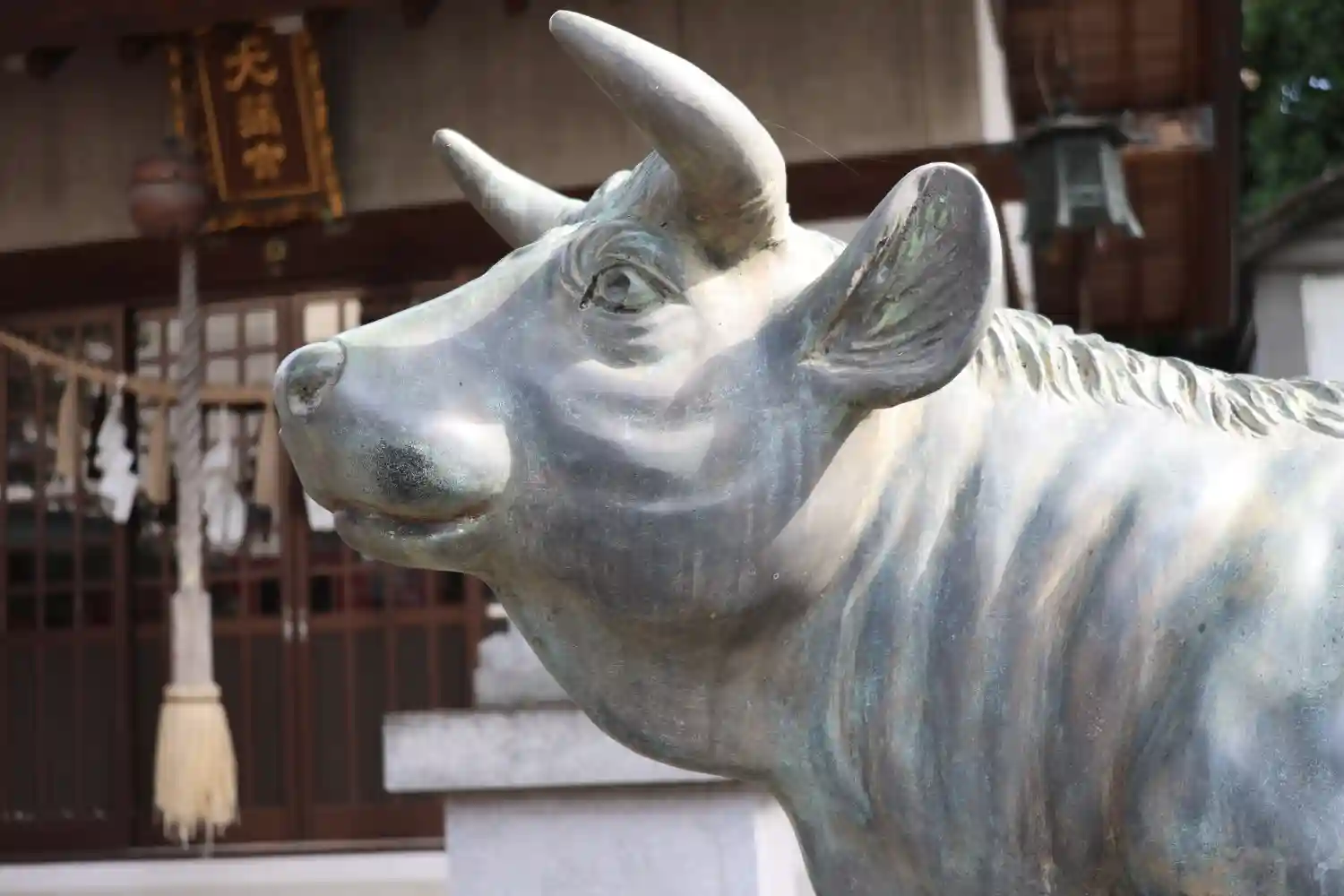 なで牛が鳥居くぐってすぐ右に