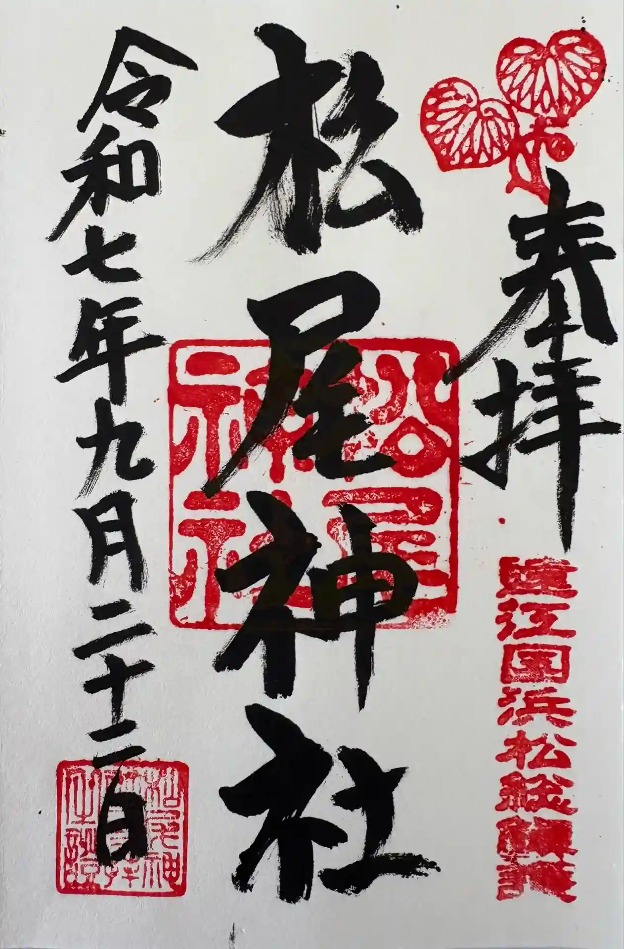 浜松市の松尾神です。参拝してきました。御朱印は縣居神社で頂けます。