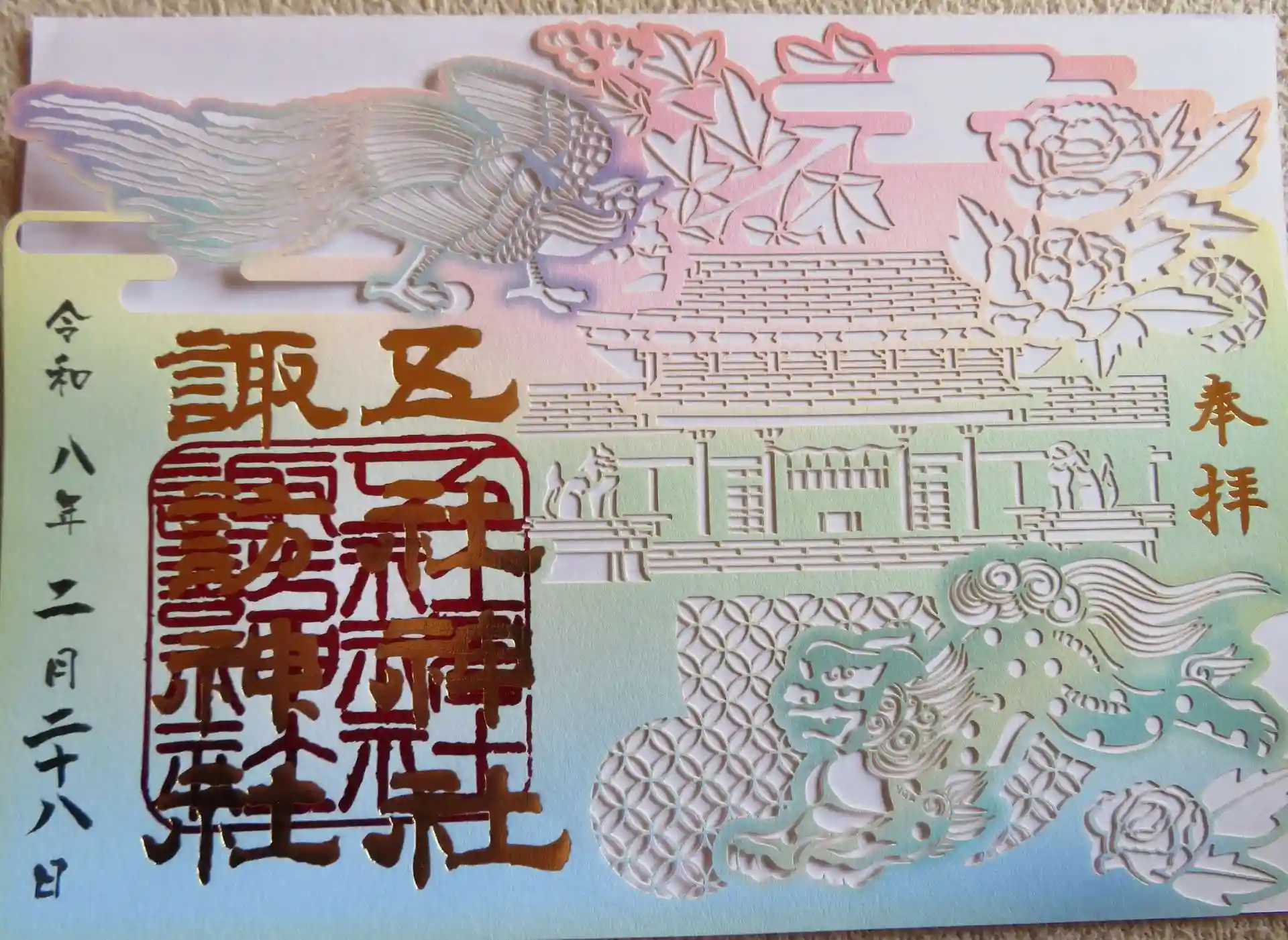 とても大きな狛犬がしっかりと守ってくださっていました。とても素敵な切り絵の御朱印も頂きました。
