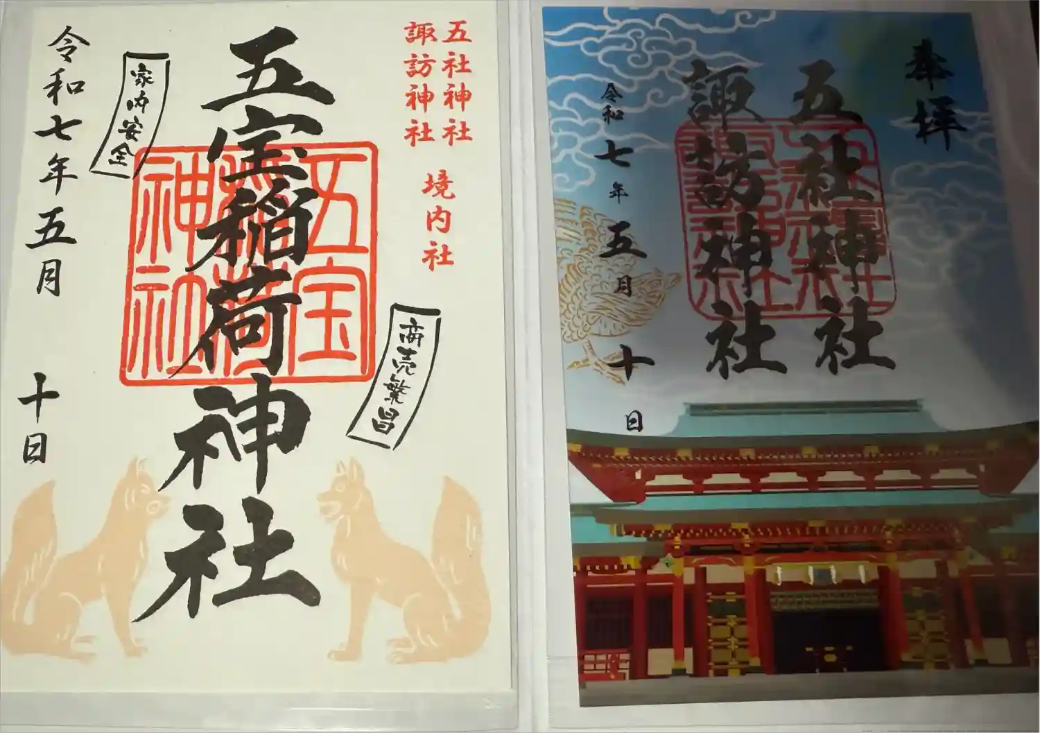 五社神社 諏訪神社の御朱印・御朱印帳