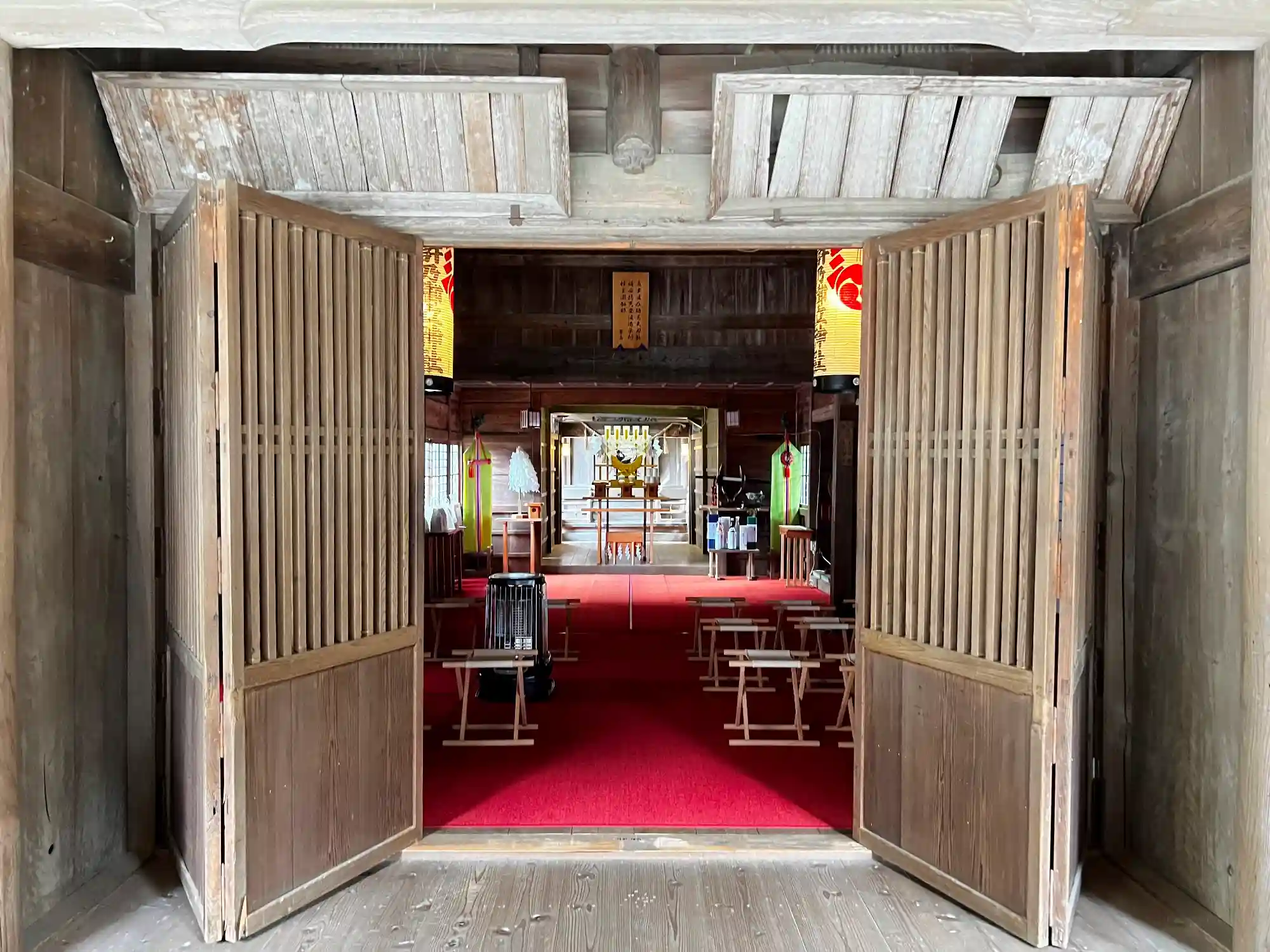 <拝殿>内部。祭壇越しに本殿が見える。