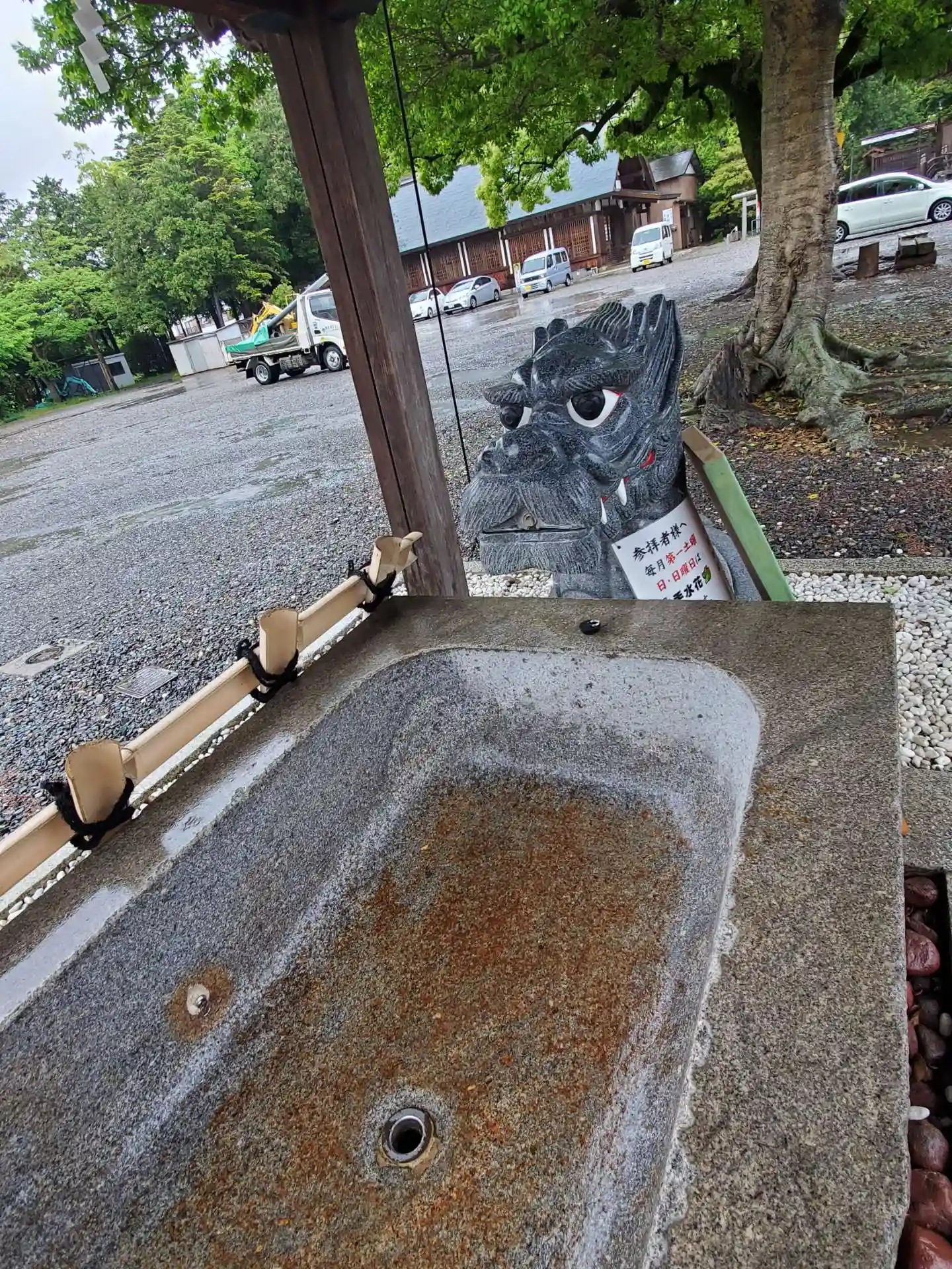 バイク神社と言われているためバイクの駐車場も広くこの日は大雨でしたがバイクで来ている人もいました。