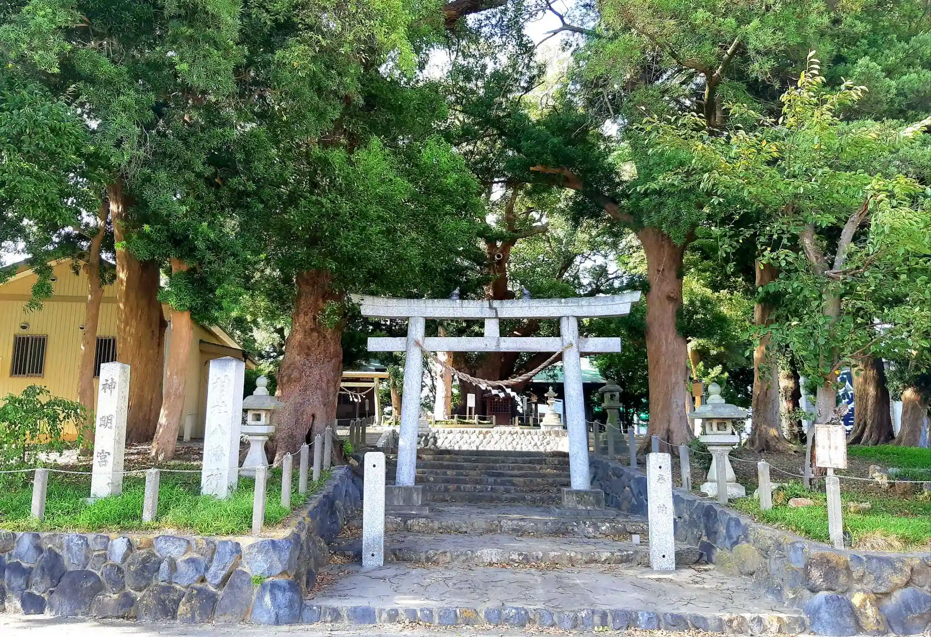 八幡神社と神明宮の社号標