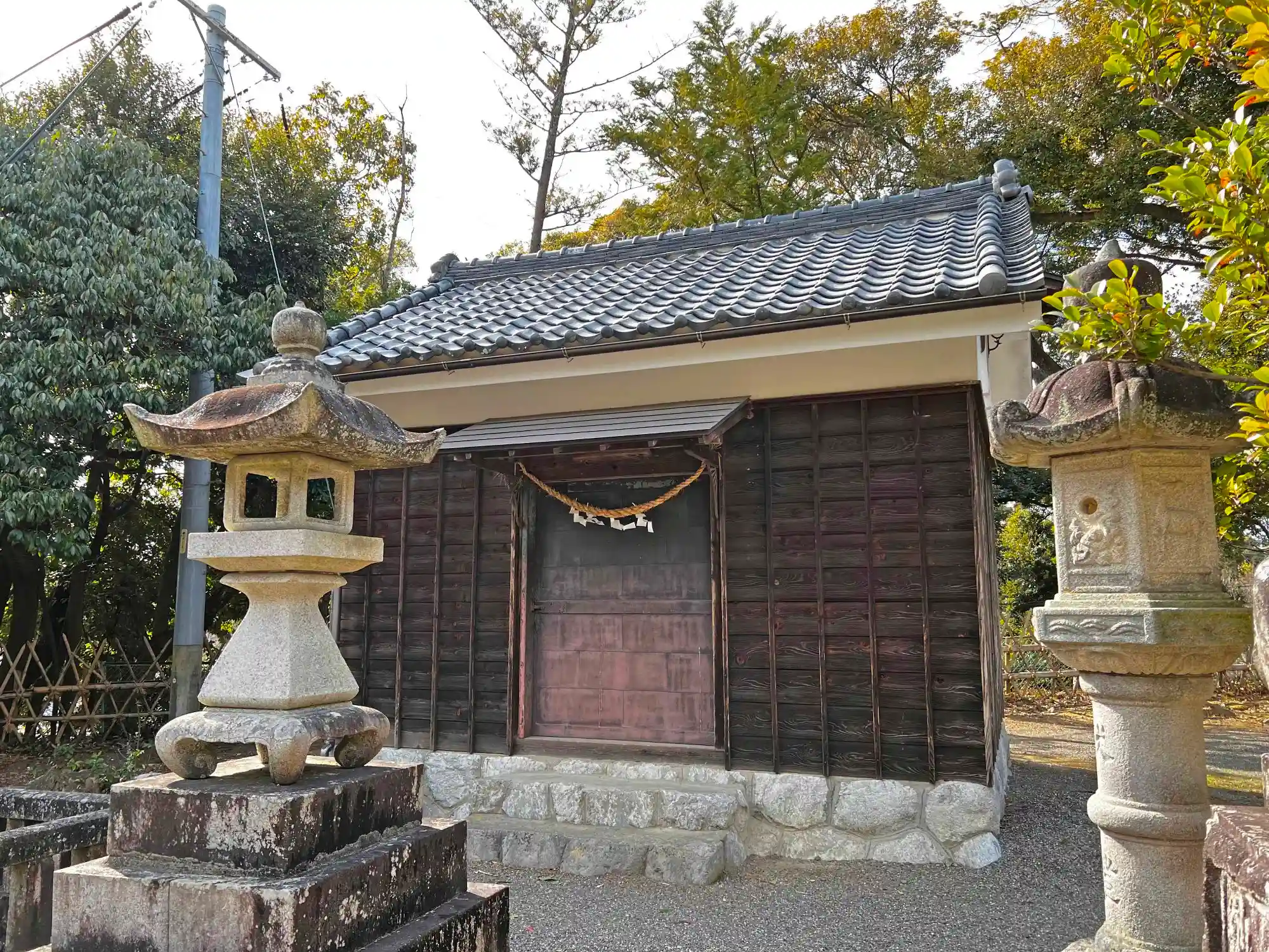 <拝殿>全景。瓦葺のシンプルな造り。