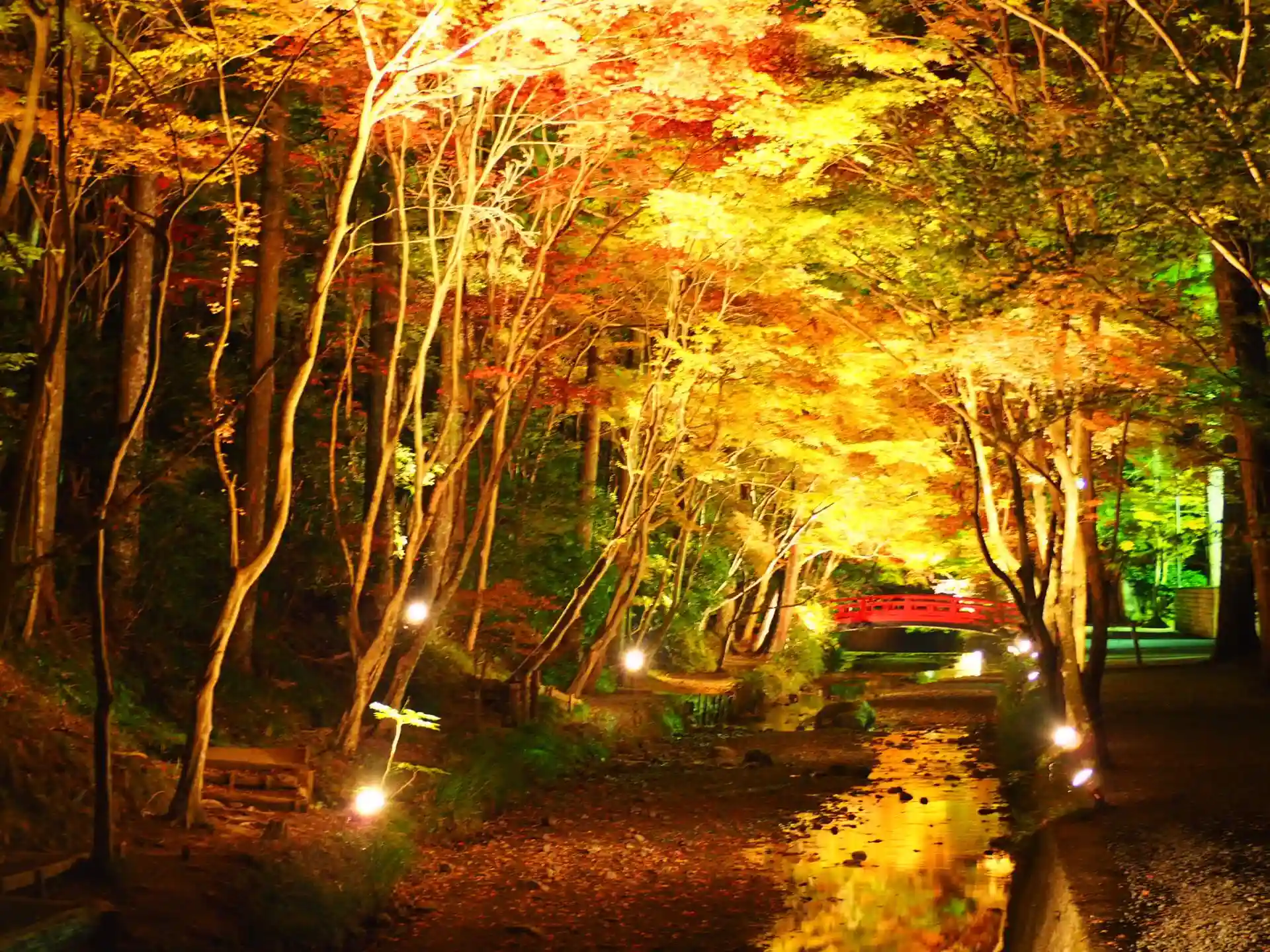 紅葉の時期、期間は確かそんなに長くないですが夜間ライトアップしてくれています。