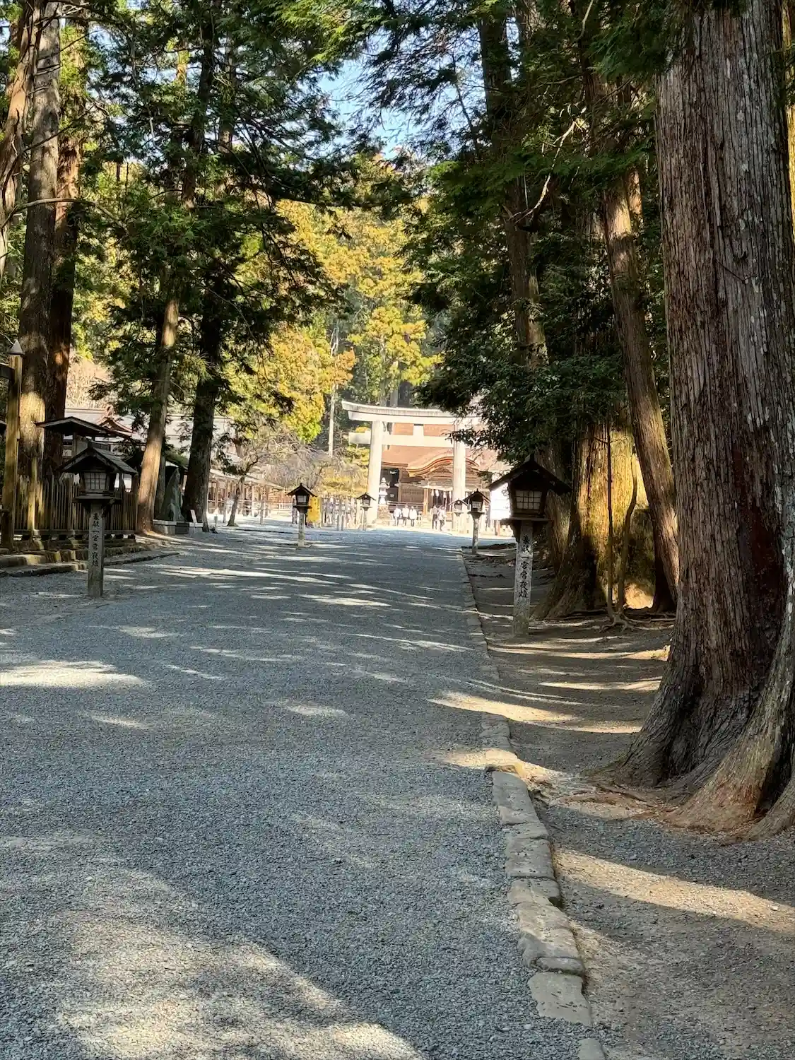 一の鳥居から二の鳥居までの参道は杉が立ち並び途中に事待池、神楽殿、大杉と拝殿へ辿り着くまでワクワクしてきました😊