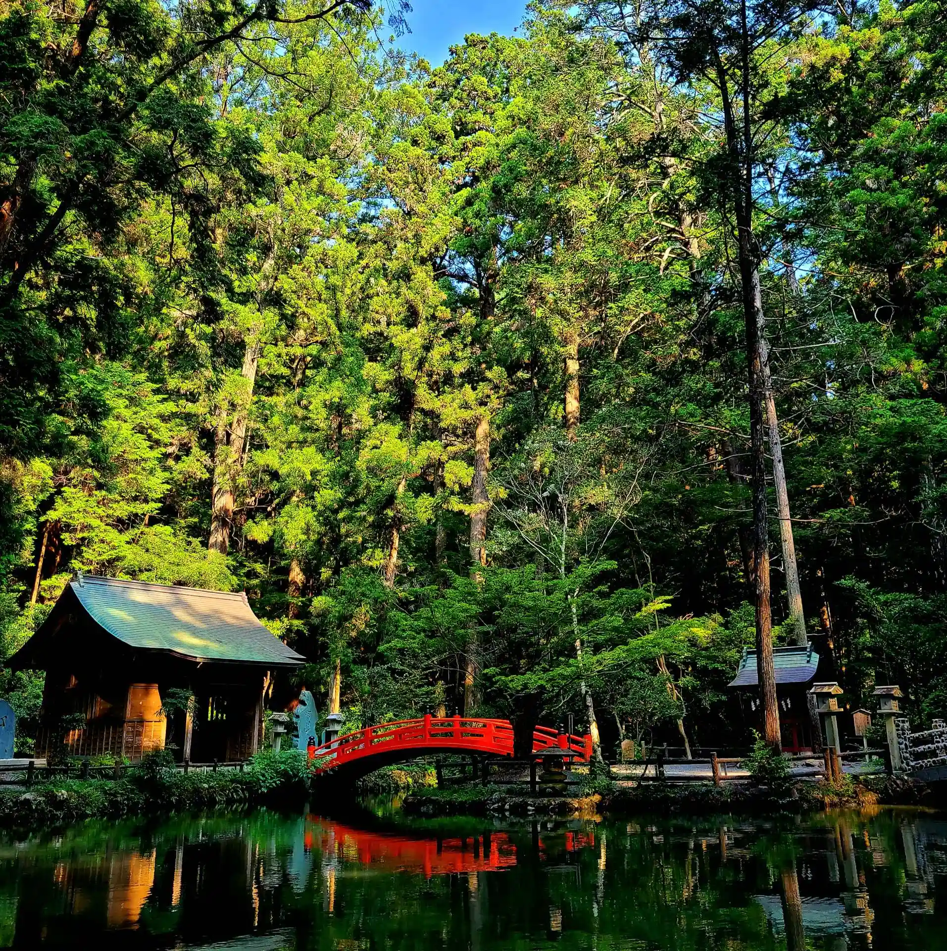 一の鳥居の先、杉の古木が立ち並ぶ参道は、常に変わらず参拝者を厳かに迎え入れますが、対照的に横を流れる宮川沿いは、春の桜から夏の新緑を経て秋の紅葉と、四季折々の変化で人々を楽しませてくれます。