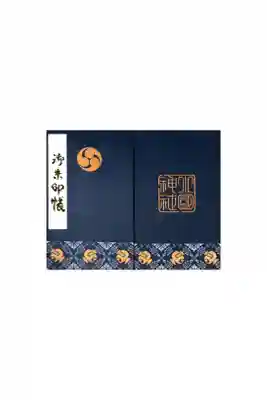紺色の地に、下部に金色の小槌が文様に使われています。