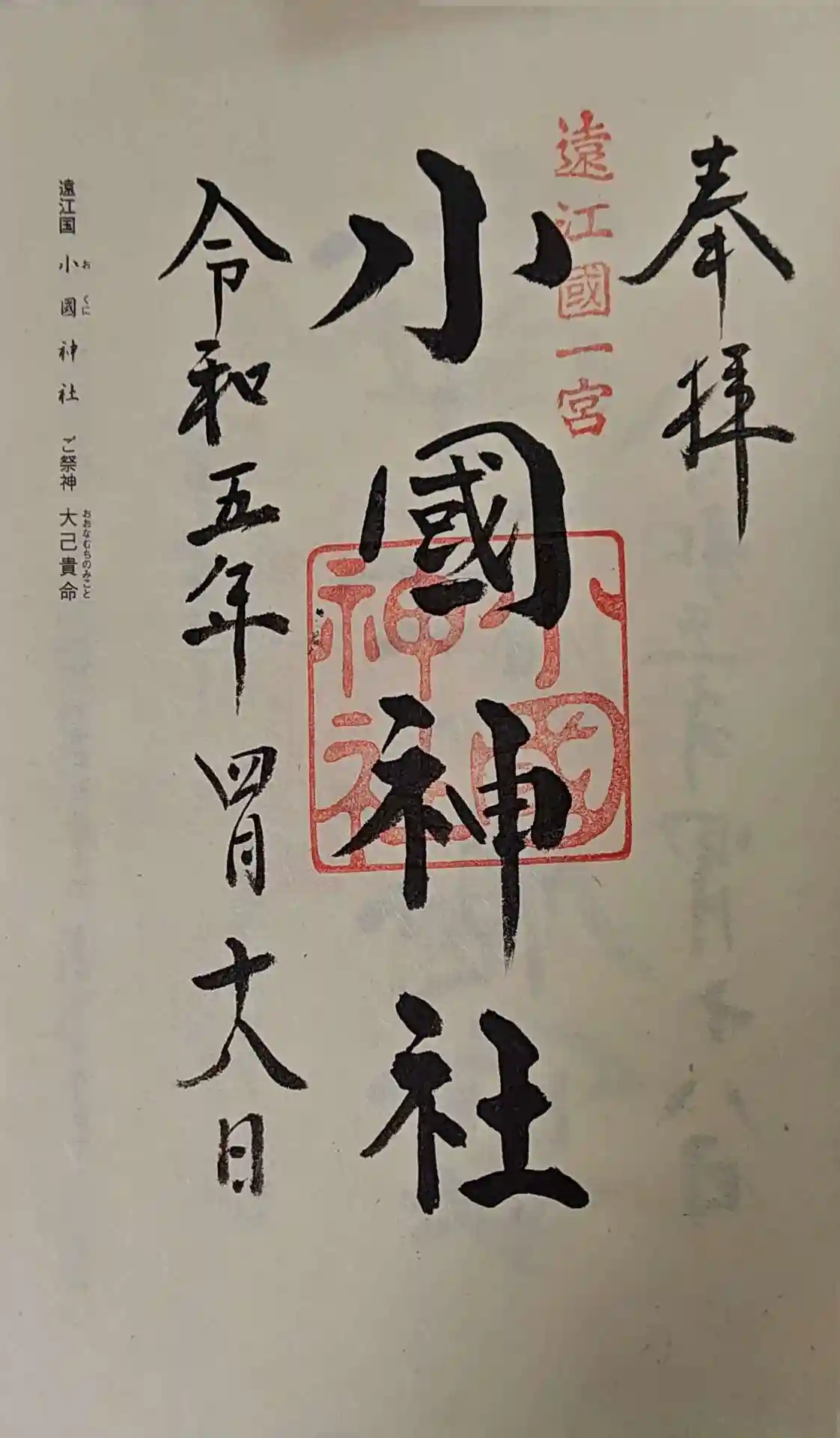 全国一の宮めぐりの専用御朱印帳の二社目に小國神社を参拝しました…