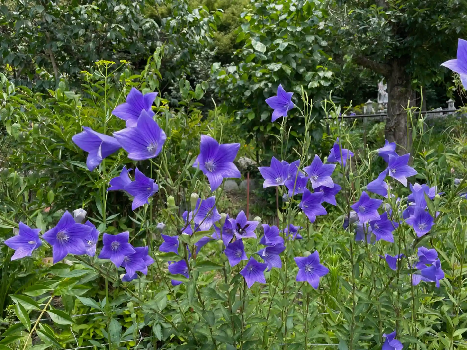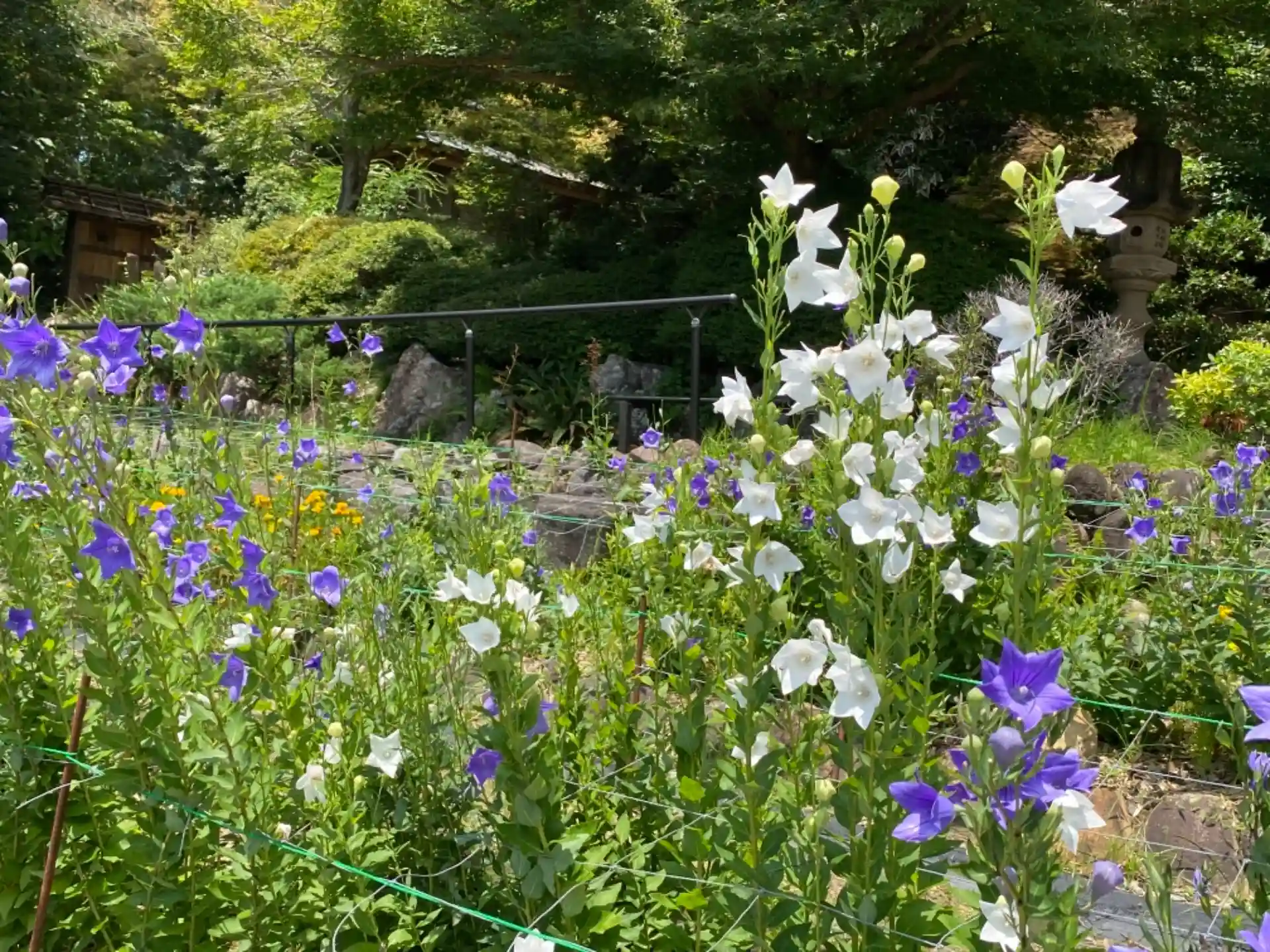 ご住職の夢まくらに現れた観音様のお告げで作られたという桔梗の花園は、ちょうど見頃を迎えていて見事。