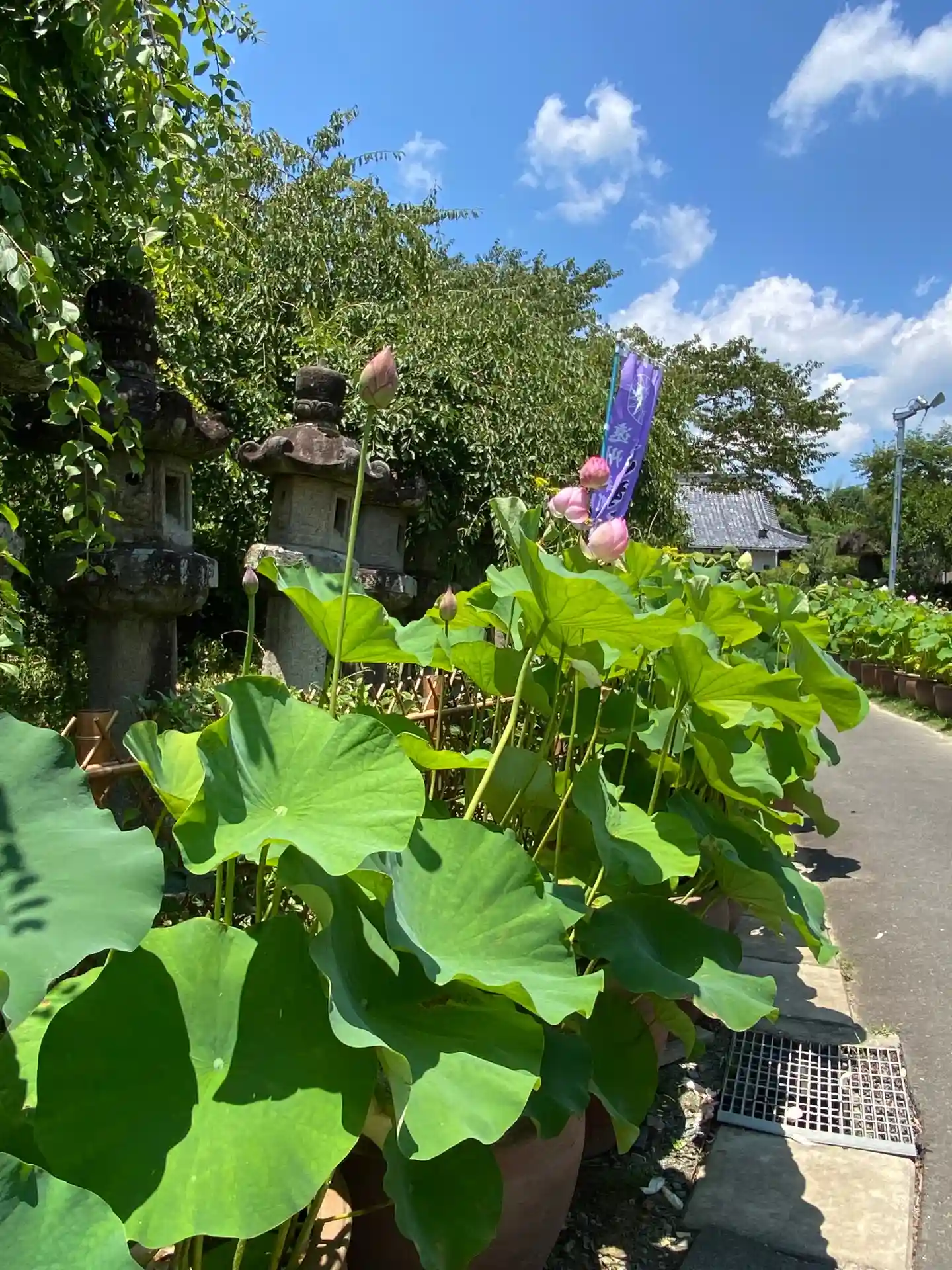 山門の傍に蓮の花!