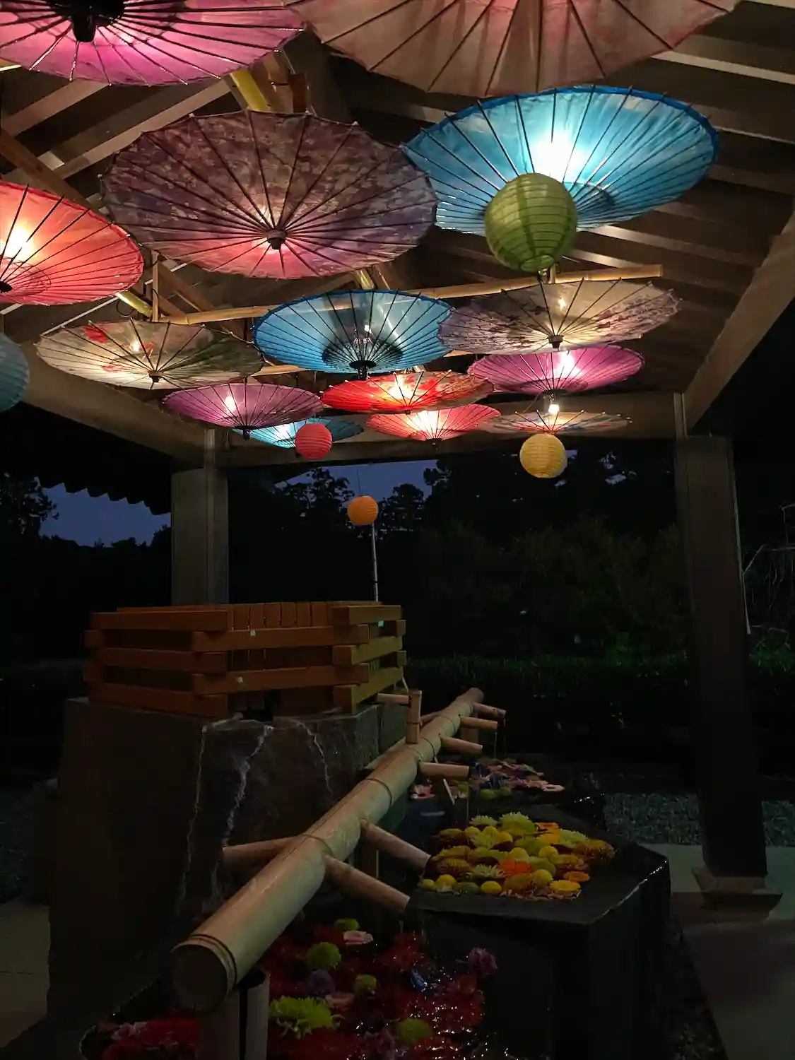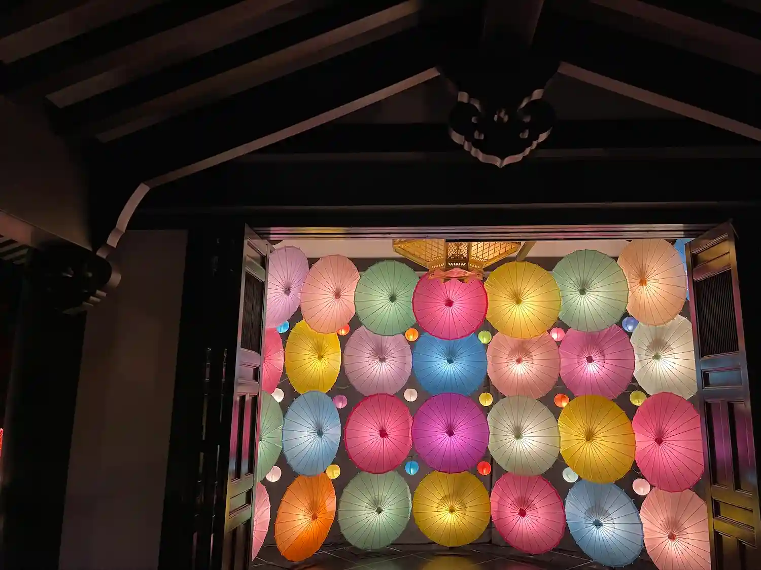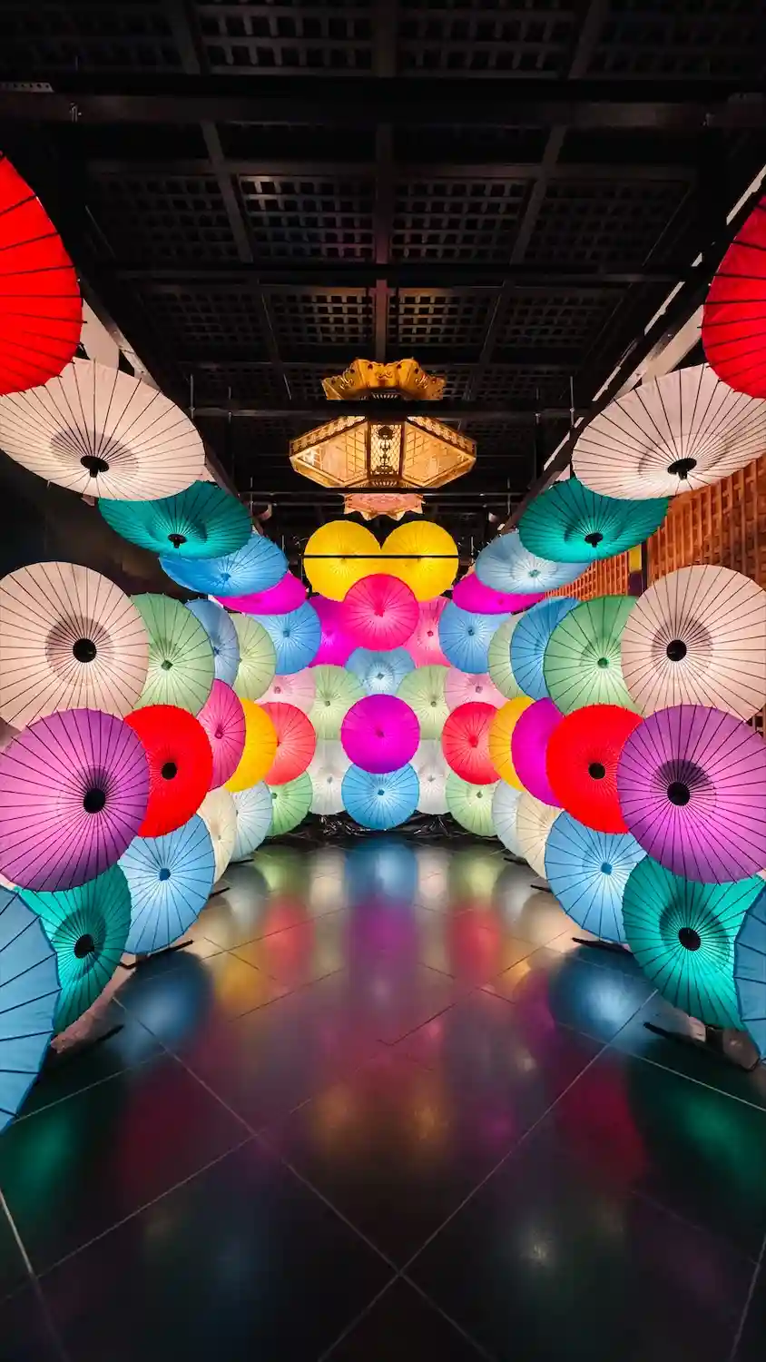「灯りと彩り和傘アート」の展示