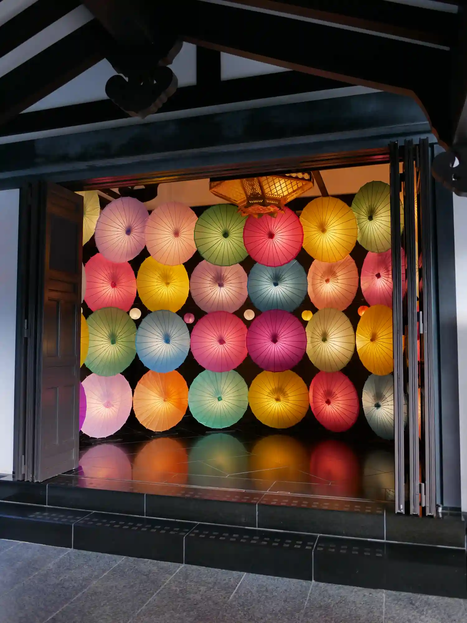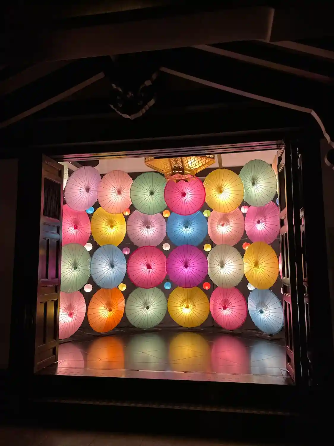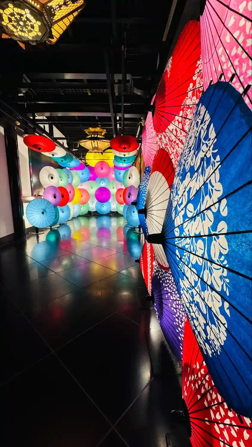 「灯りと彩り和傘アート」の展示