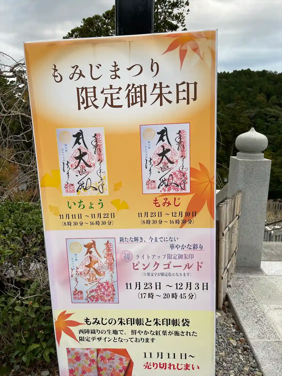 秋の季節限定の御朱印帳販売のご案内が出て