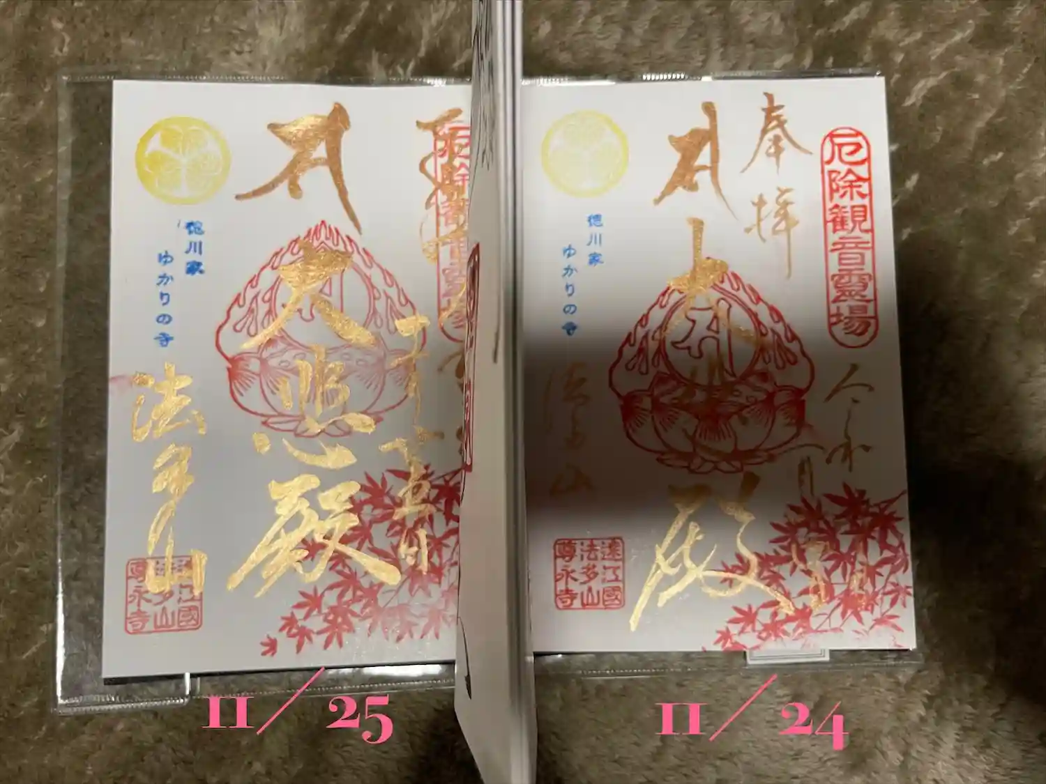 2つの家紋入り御朱印帳