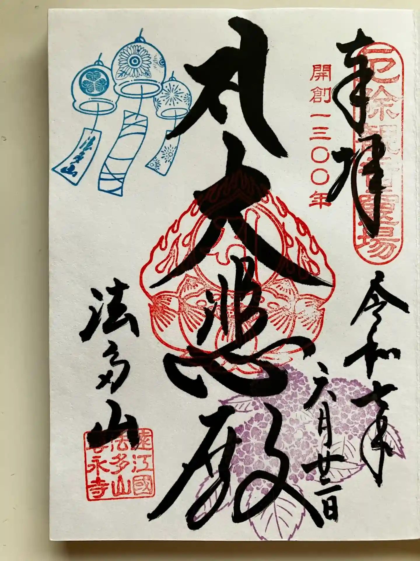 「風鈴と青もみじ」の御朱印です