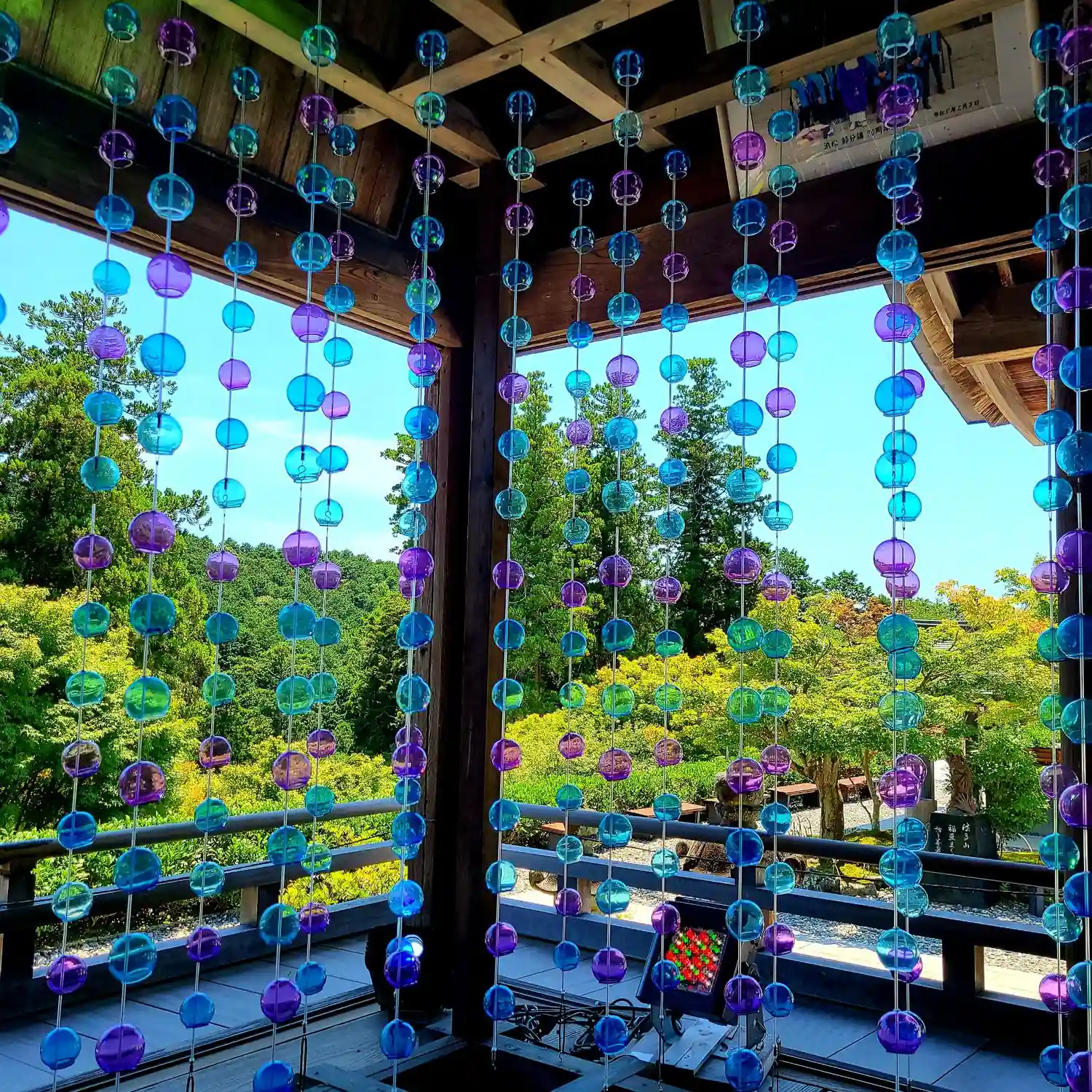 本堂横の「ねがい風鈴」です。とても幻想的💚
