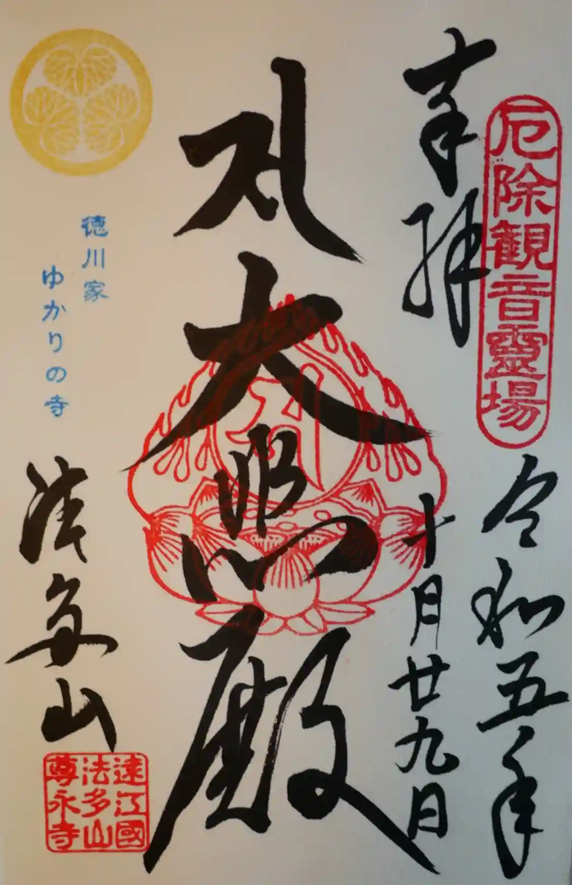 本日、うかがって頂いた書き置きの御朱印になります。
