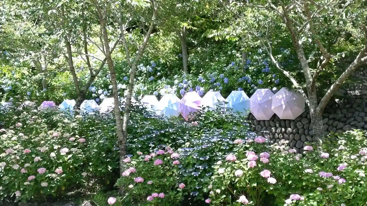 満開の紫陽花とミニアンブレラスカイ