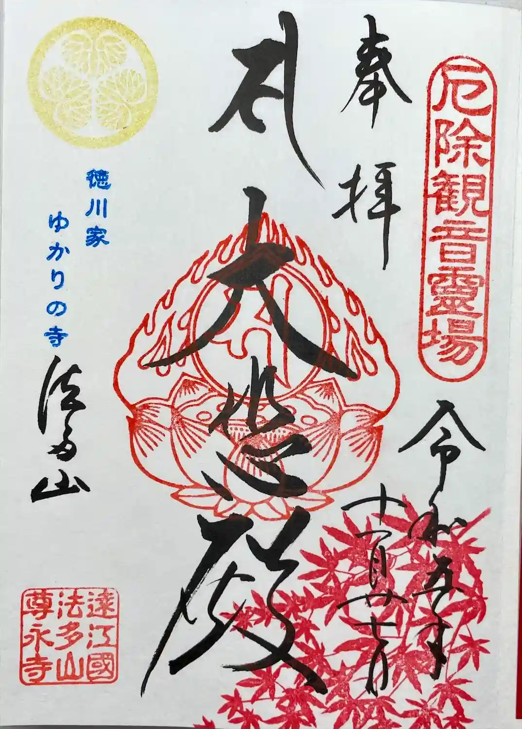 秋のもみじの御朱印を頂きました。