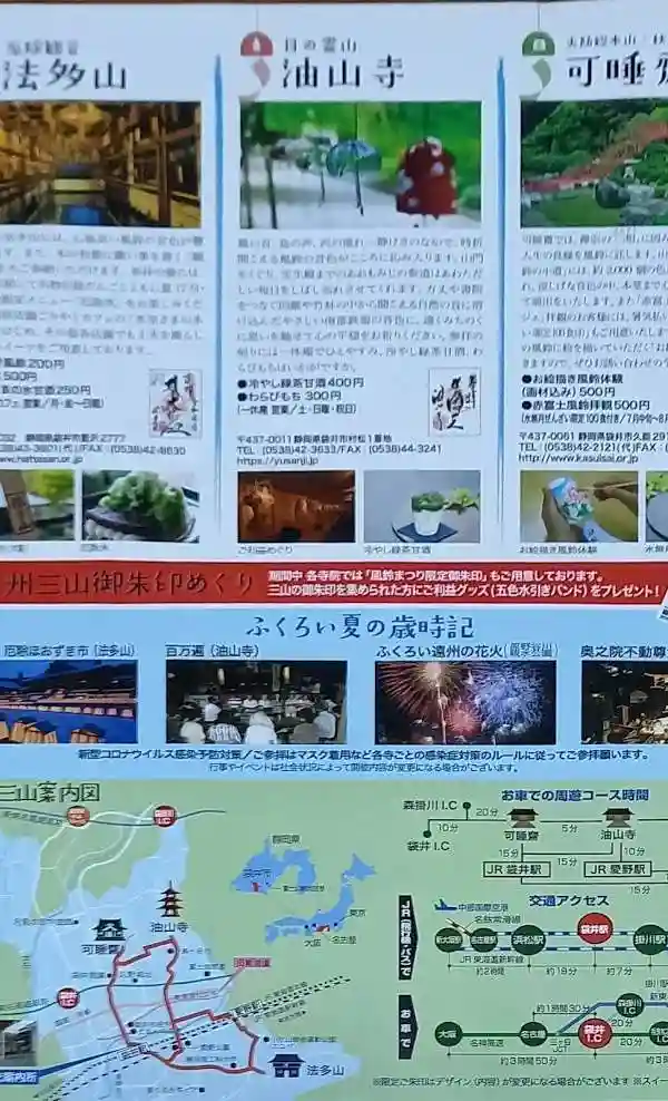 法多山尊永寺、可睡斎、油山寺の遠州三山御朱印巡りを行うと、限定で五色の水引バンドがいただけます。