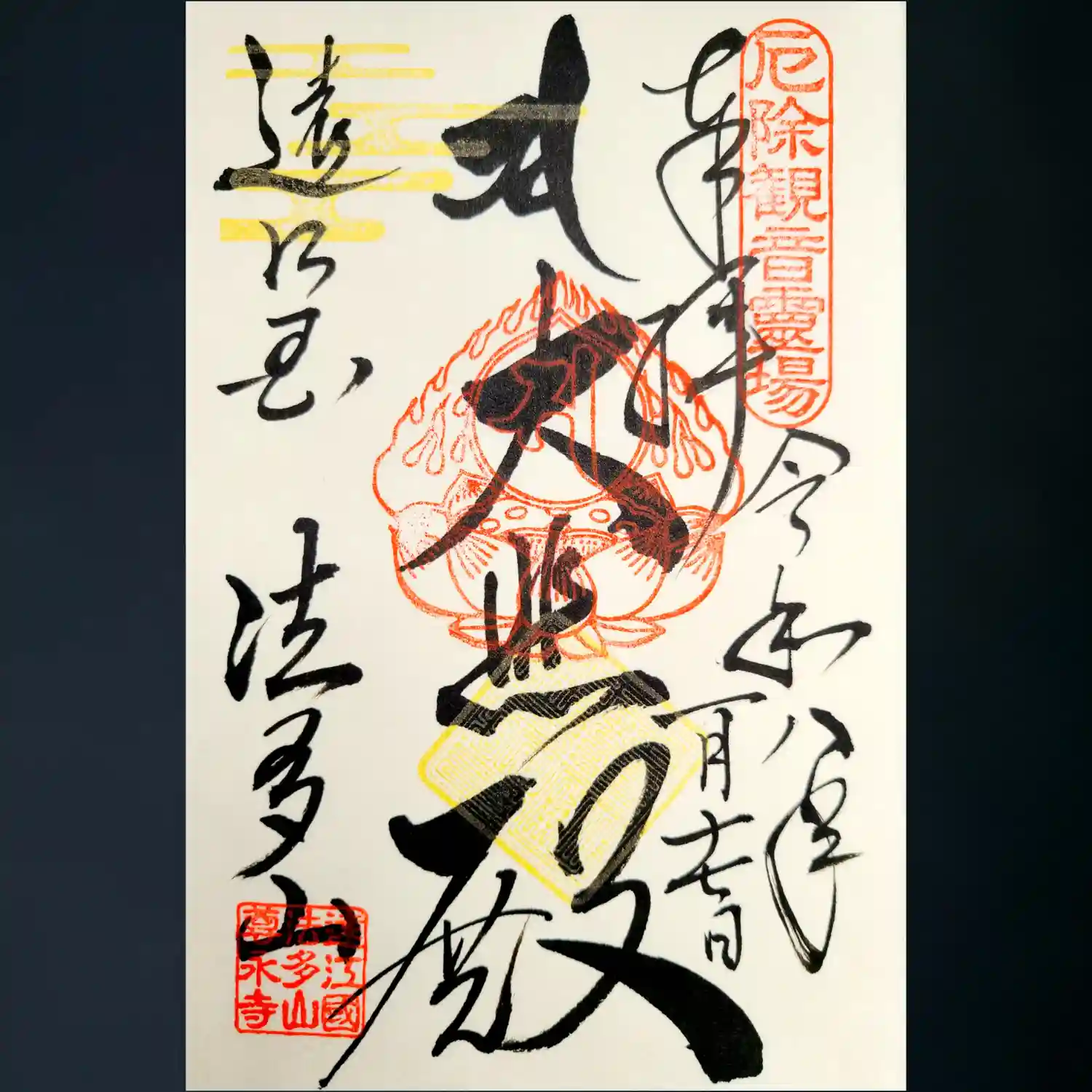静岡県袋井市の法多山、尊永寺です。己書?を習ってる知り合いから黒和紙の御朱印帳を頂き、ライトアップ…