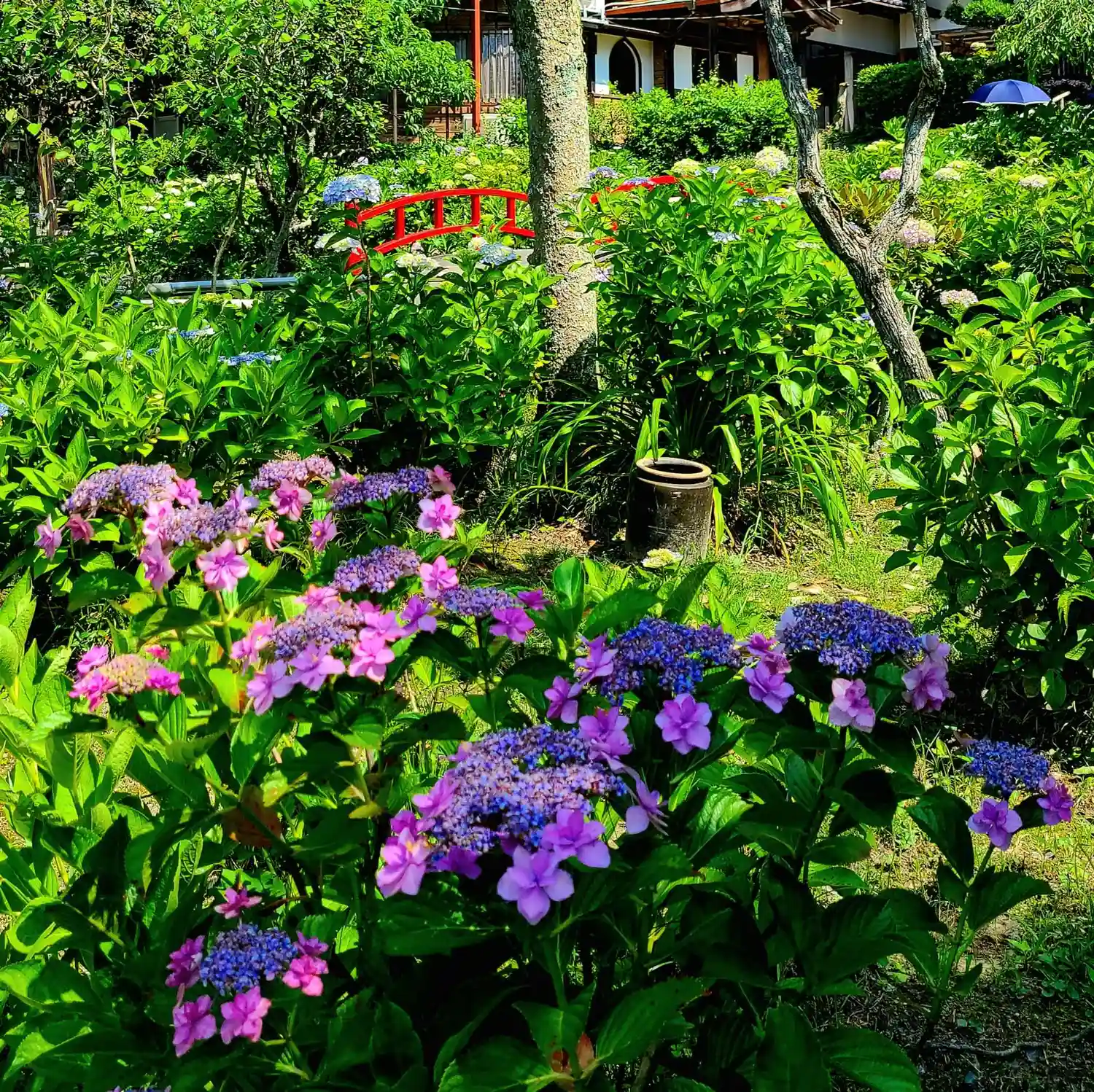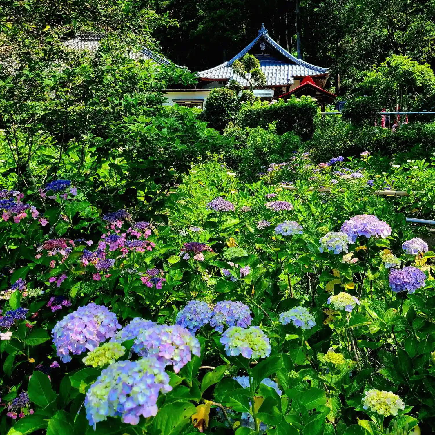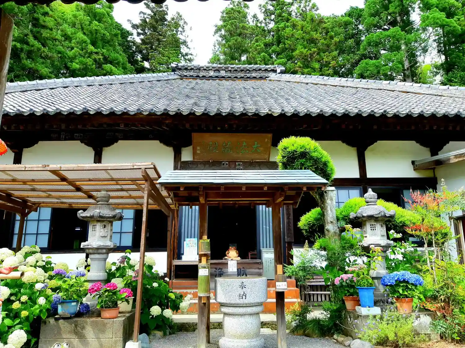 「あじさい寺」の別名通り、境内の至る所に様々な種類の紫陽花が植えられていていました。