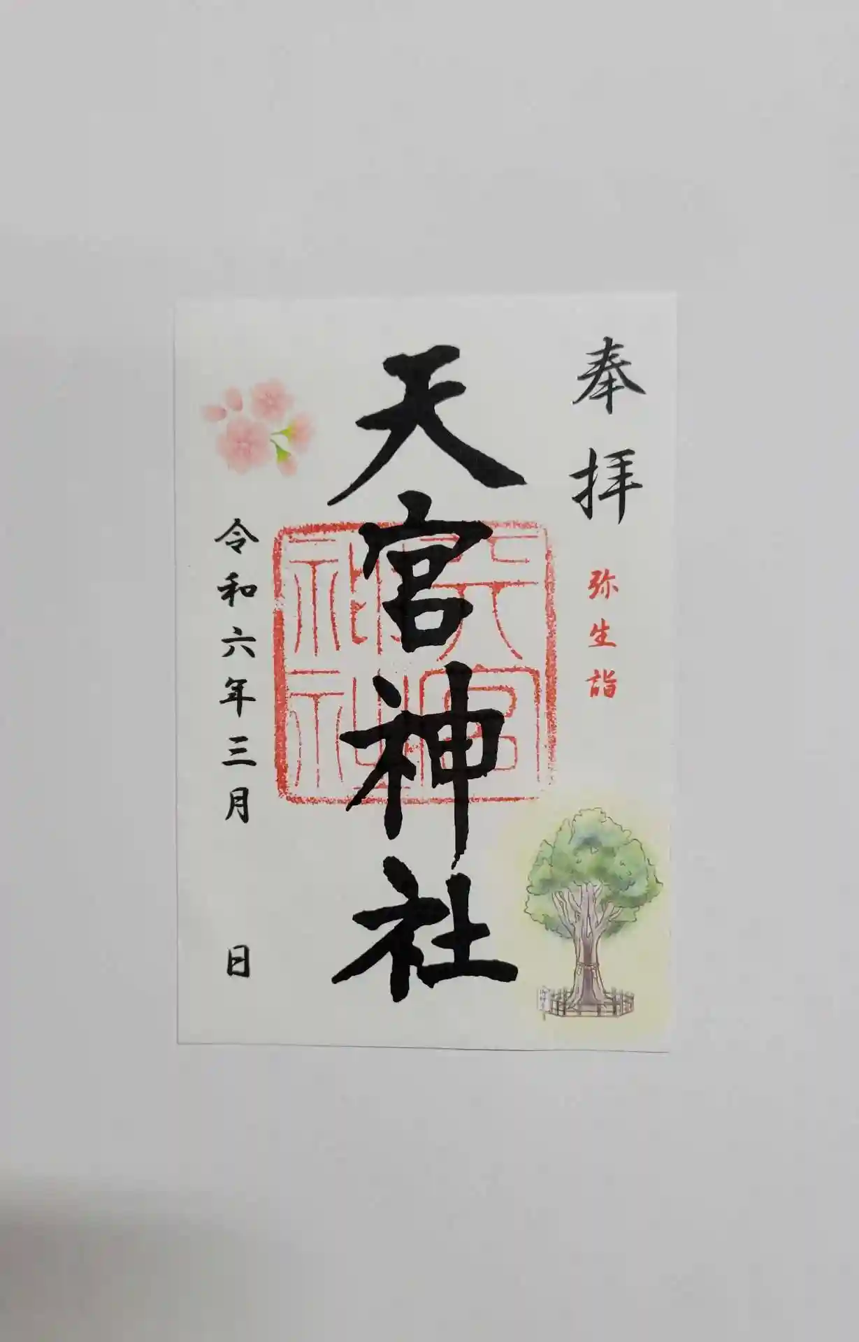 3月1日の朔日詣で神事ご参列の方にはひな祭りのご朱印になります。書き置き朱印は二種ありますが共に桜です。直書きも明日から3日まではひな祭りの印になります。以降は桜印を準備しています。