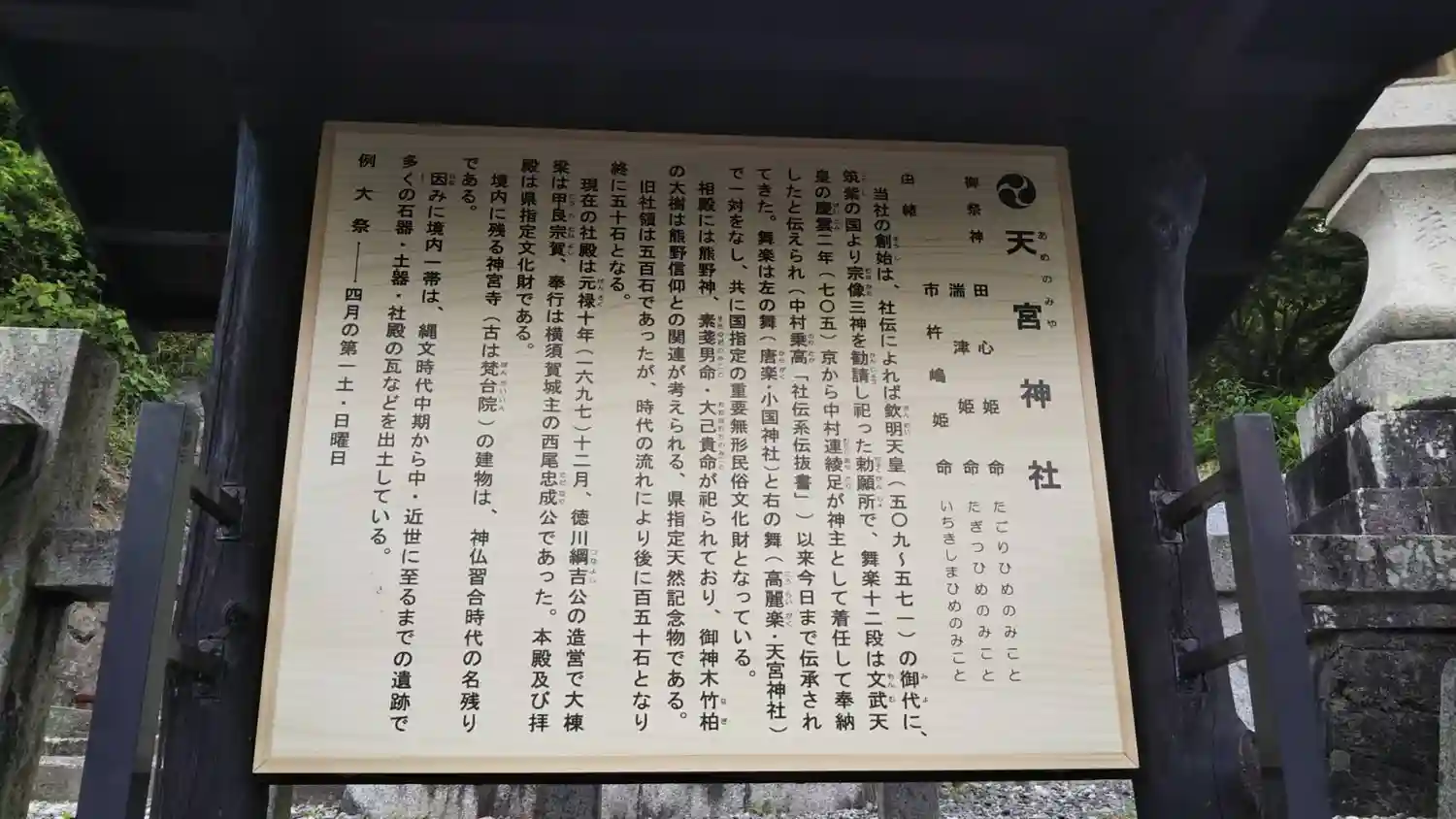 | ご祭神 | 《主》湍津姫命,田心姫命,市杵島姫命 | |