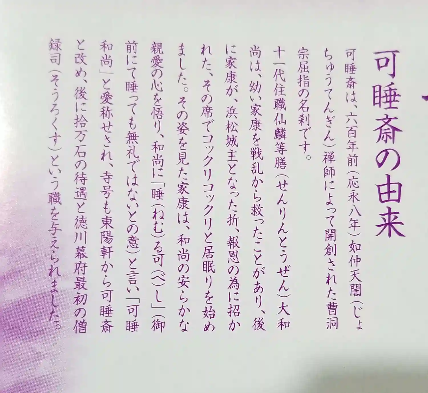 可睡齋の名前の由来