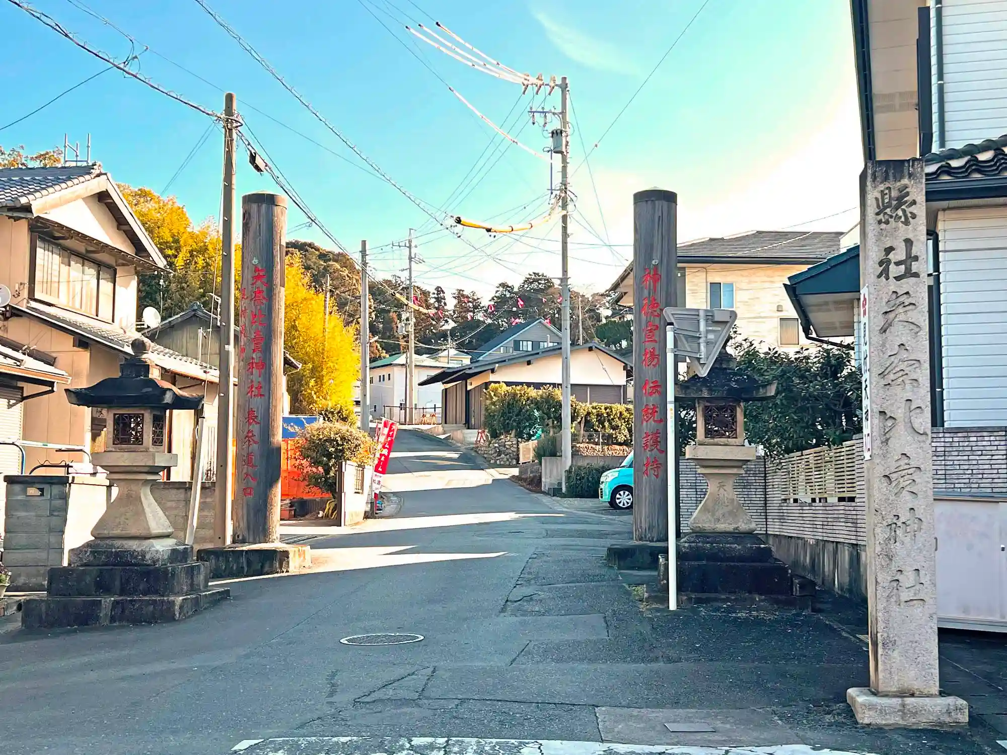 東海道から数十m北に入ったところにある<社号標>。ここから坂を登って行く。