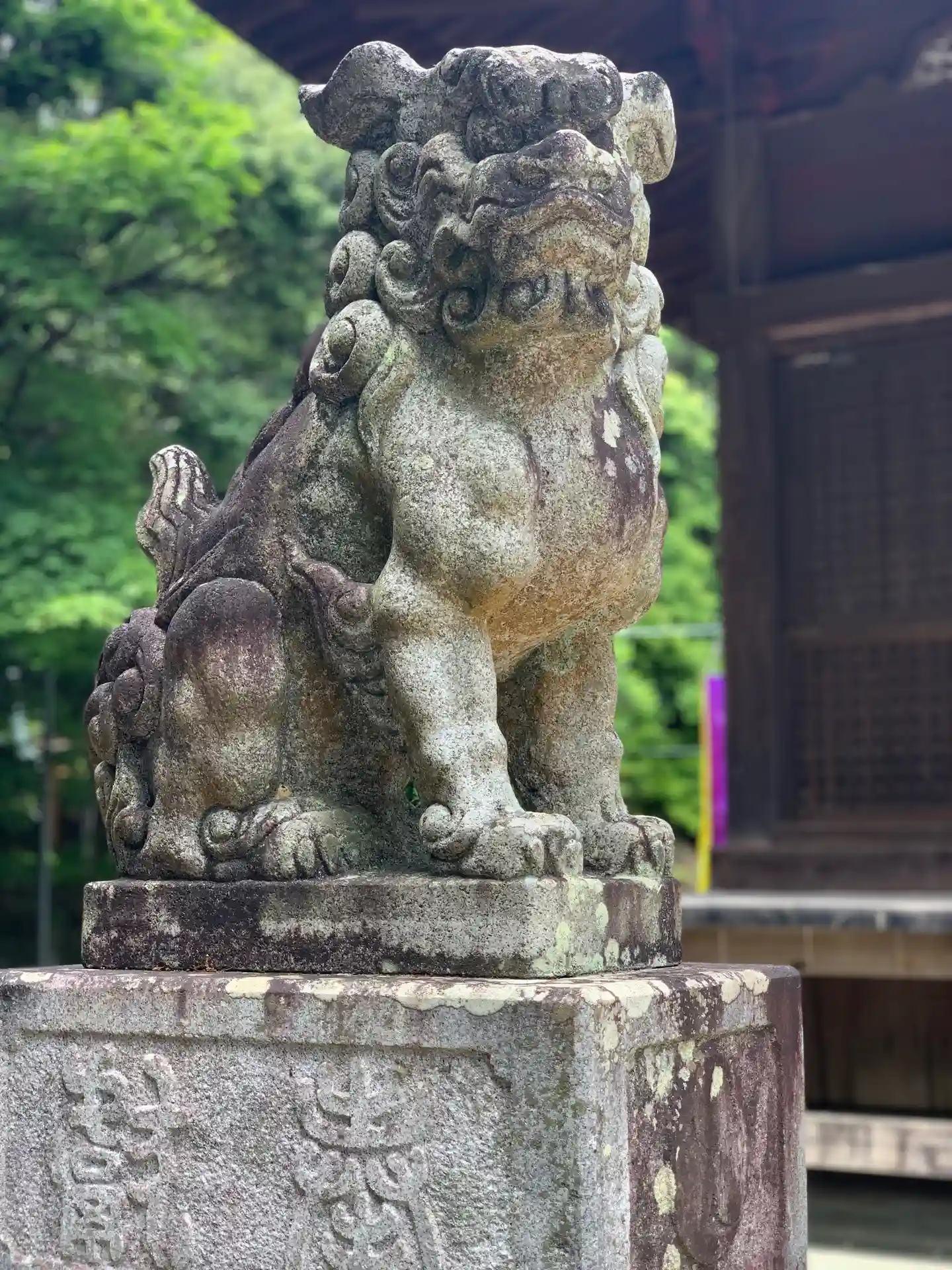 拝殿前左側の<狛犬>。