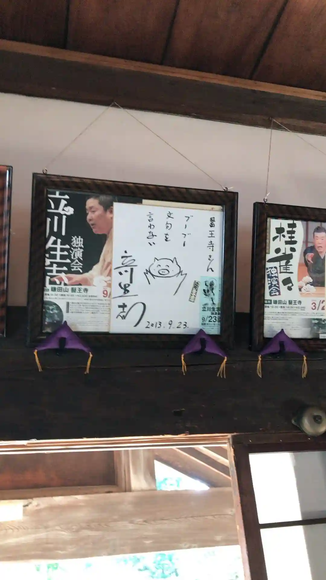 こちらではコロナ禍前までは定期的に本堂で落語会を主催でされており、著名な落語家さんのちけっと、チラシとサインが飾られており、しばしご住職と会話。