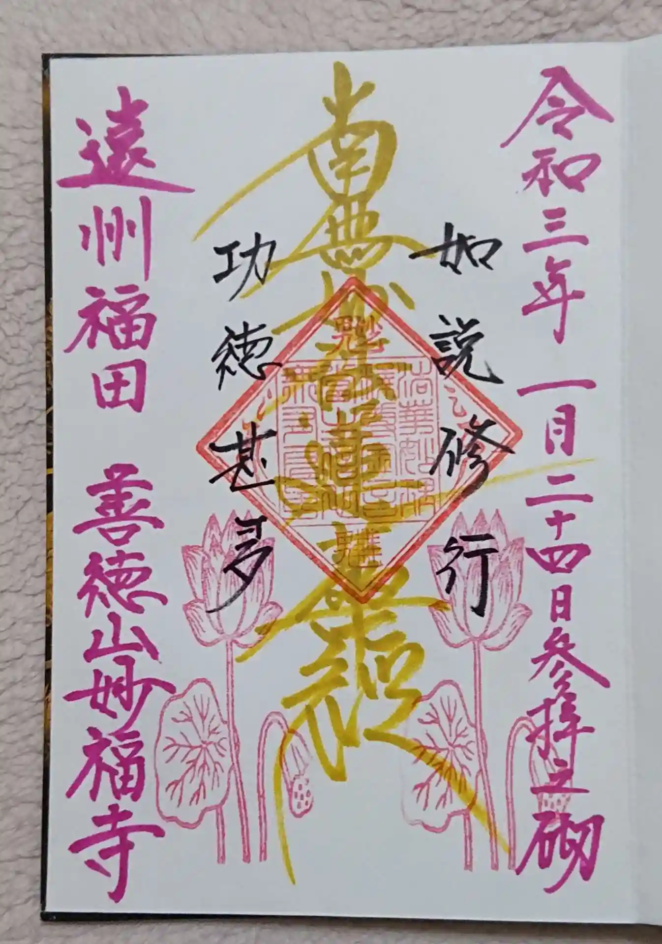 カラフルな御首題と蓮の実の飴を頂きました。