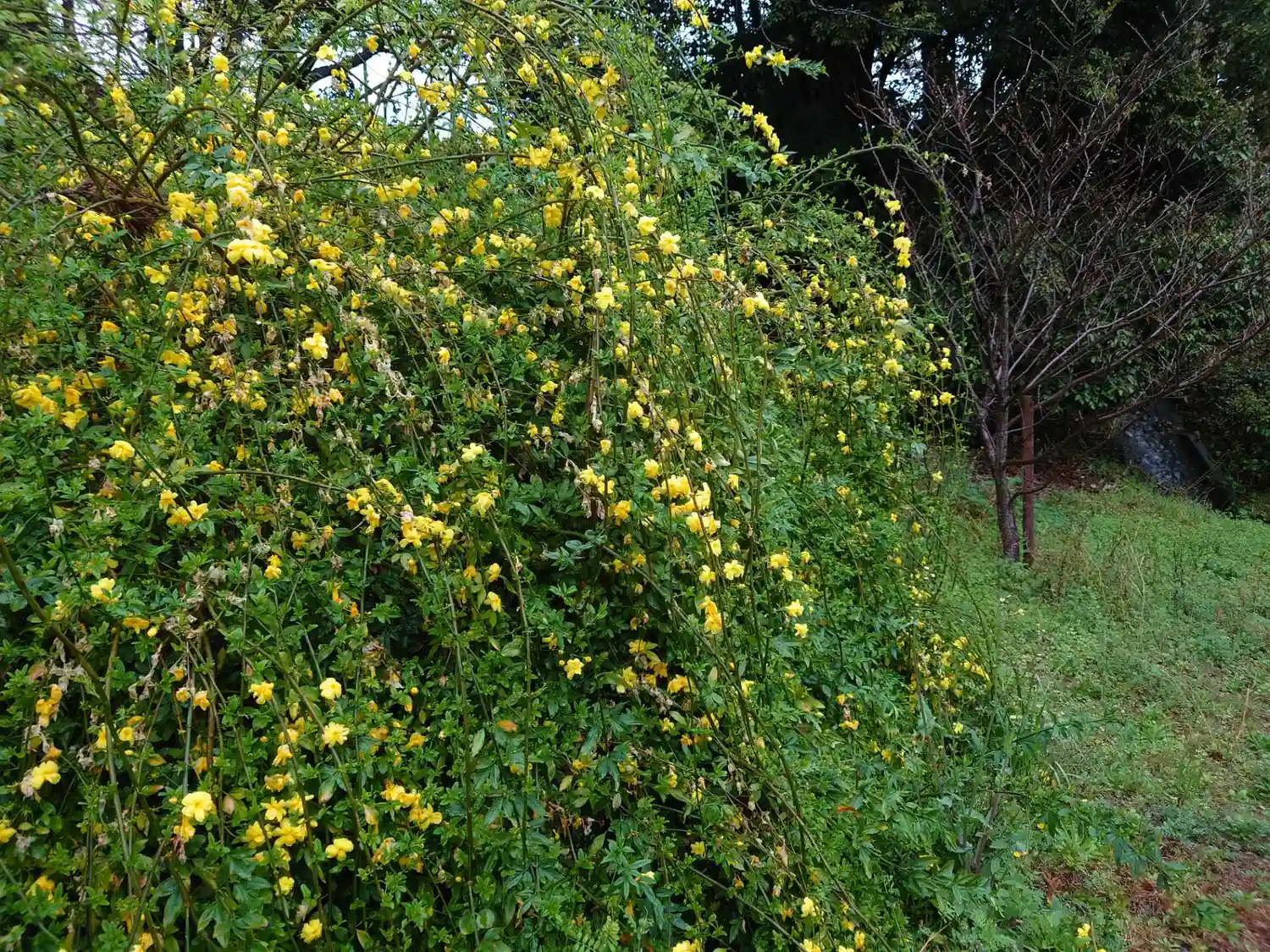 社殿の右側の様子。ブランコなどの子供遊具のそばに枝ぶりがきれいな魅力的な巨木。(o^―^o)