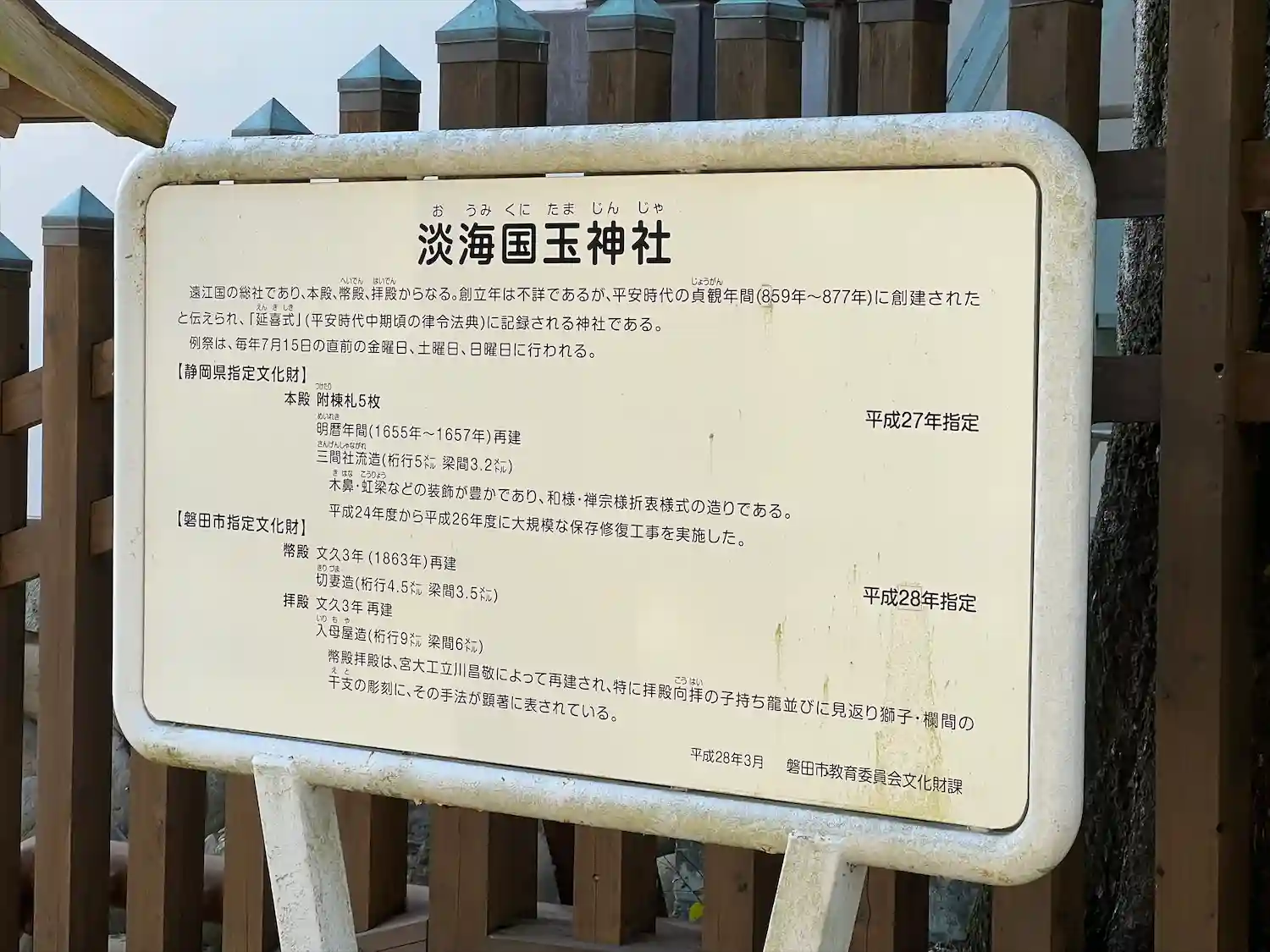 由緒書きに「国玉神=大国主神とするのは誤りであり、祀られているのはあくまでも淡海国玉神である」という説がありますが、ここから察するに淡海=浜名湖のことであり、浜名湖を神格化した神様のことなんじゃないかなとも考えています。