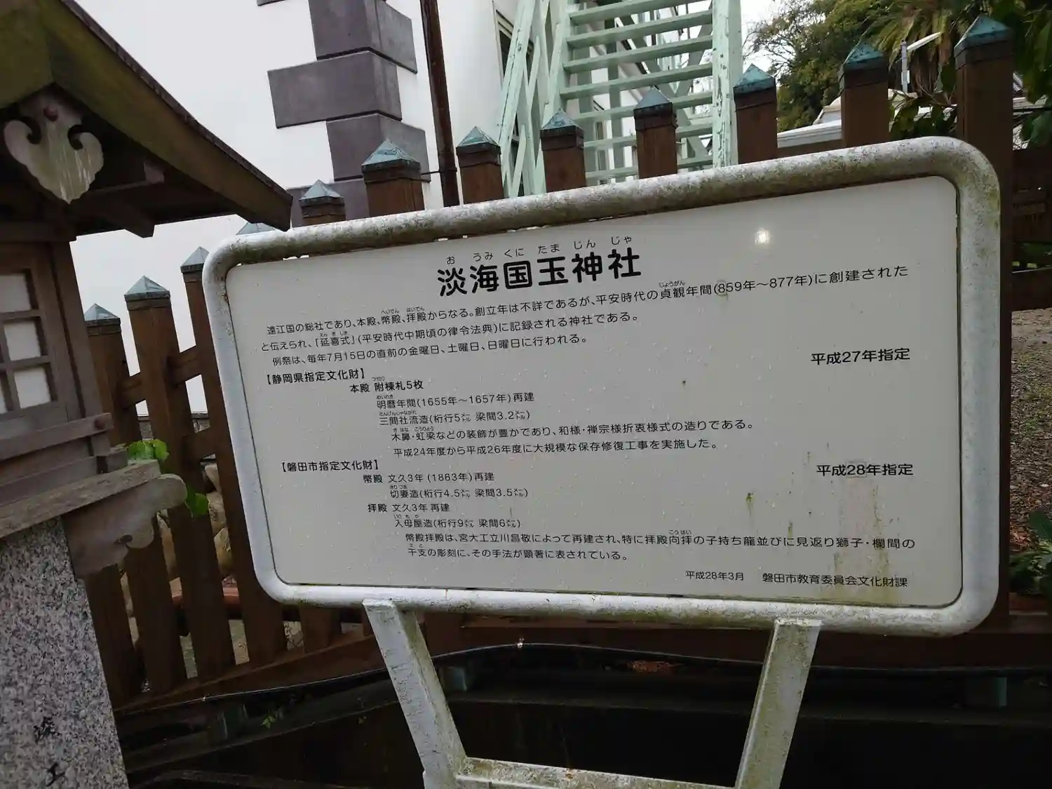 遠江国磐田郡の式内社にして、同国の総社です。夏には近くにある天御子神社さんから祇園祭で神輿が当社ま…
