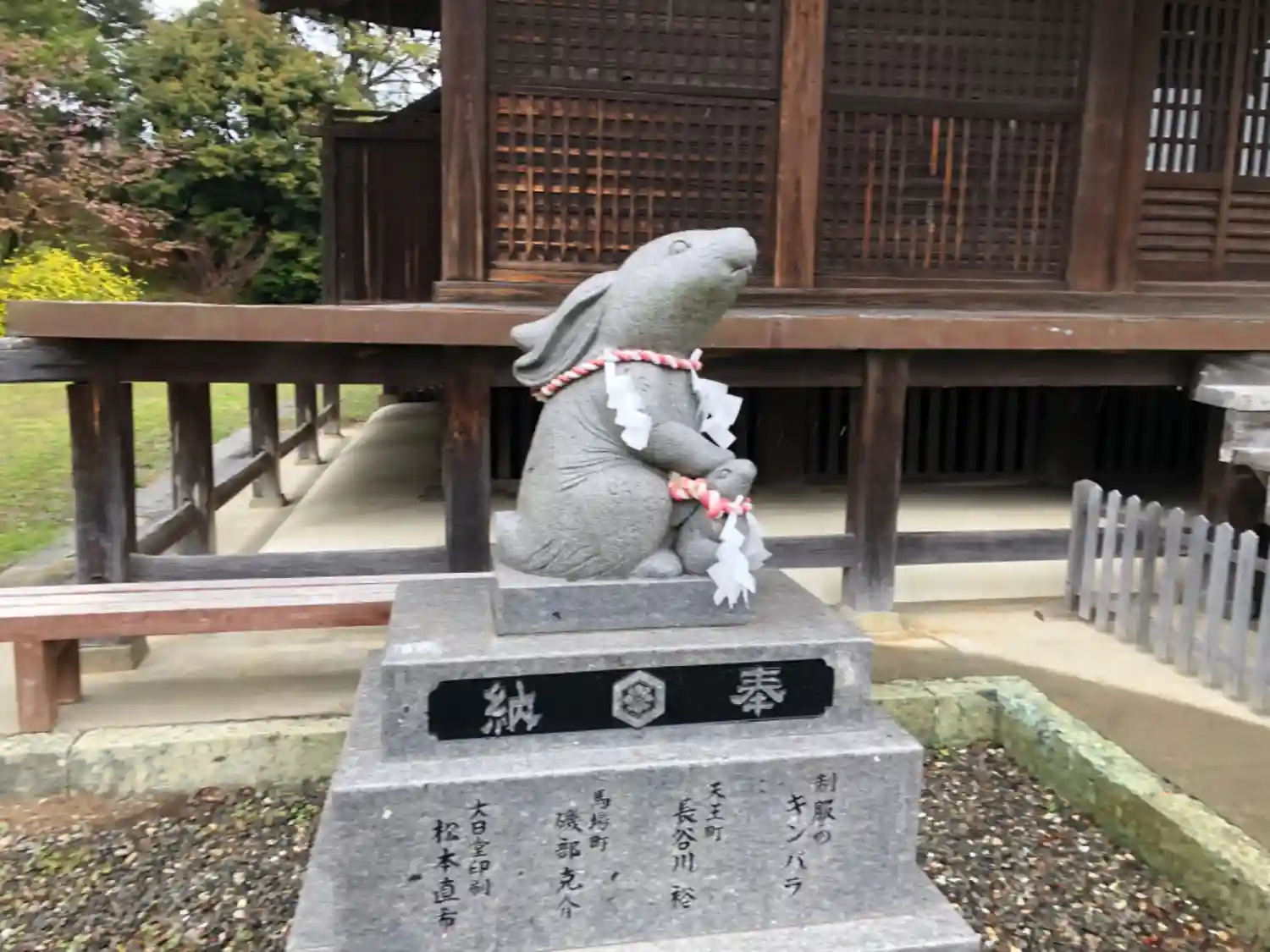 珍しく眷属さんがウサギです。由緒書きでは因幡の白兎に関連していると思われますが、大国主命さまと直接眷属として関連つけられているのはここだけだと思います。