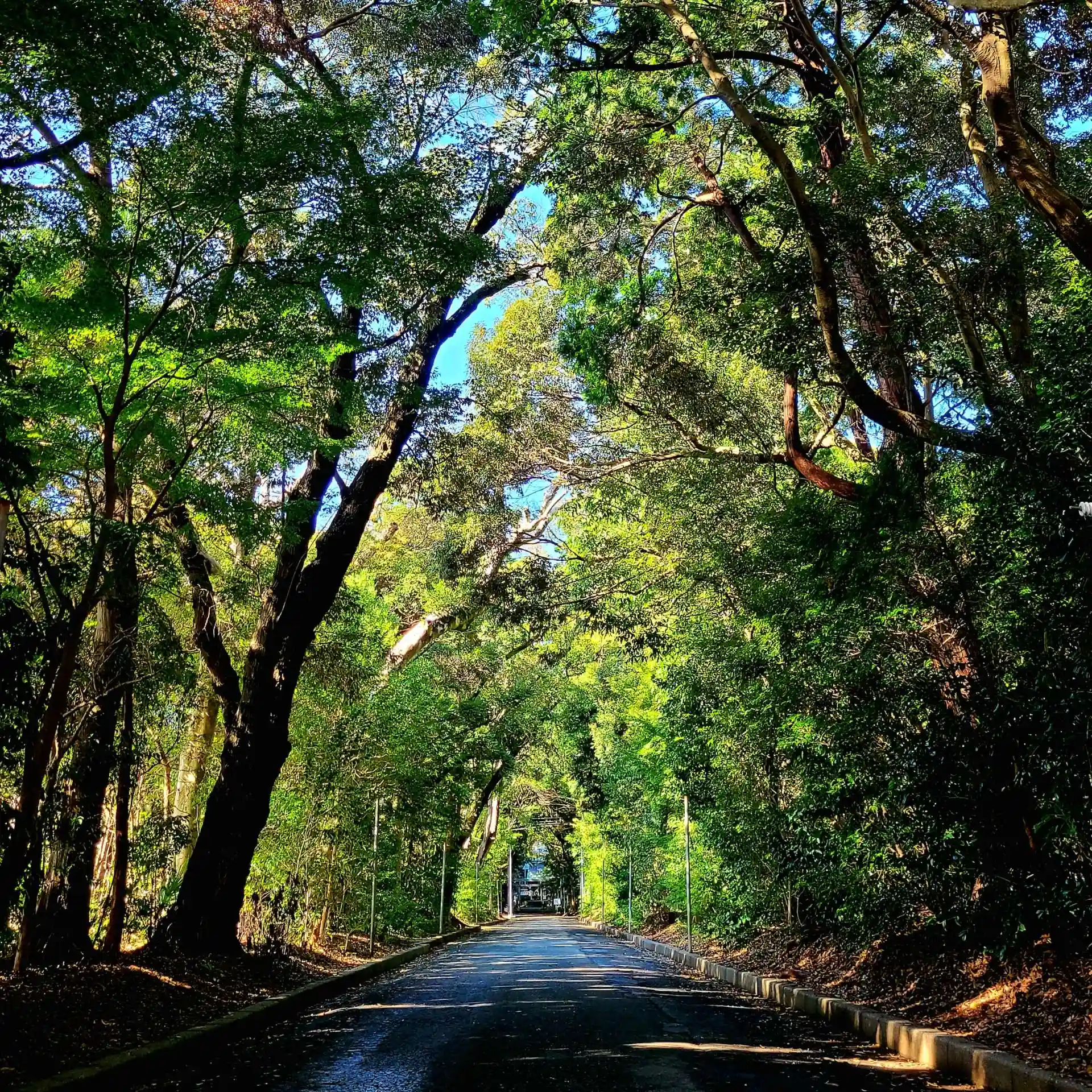 神社境内は自然豊かな杜の中に在り、大変神聖なる空気に包まれていますが、平日に参拝に上がった時には隣接する中学校の生徒さん達の賑やかな歓声が聞こえたりもします。