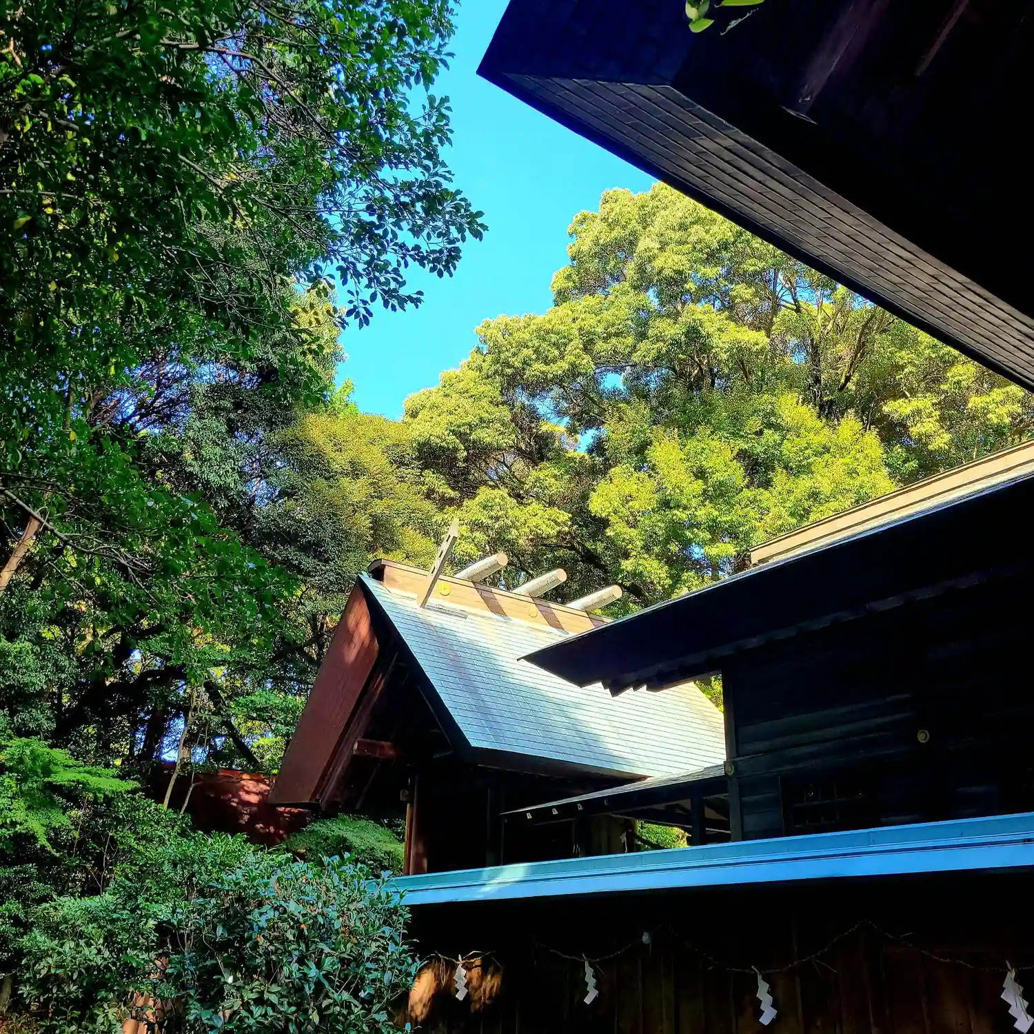 社務所から見た<社殿>全景。やはり当社の一番の見どころは、巨大で美しい造形の<拝殿>かな。(^▽^)/