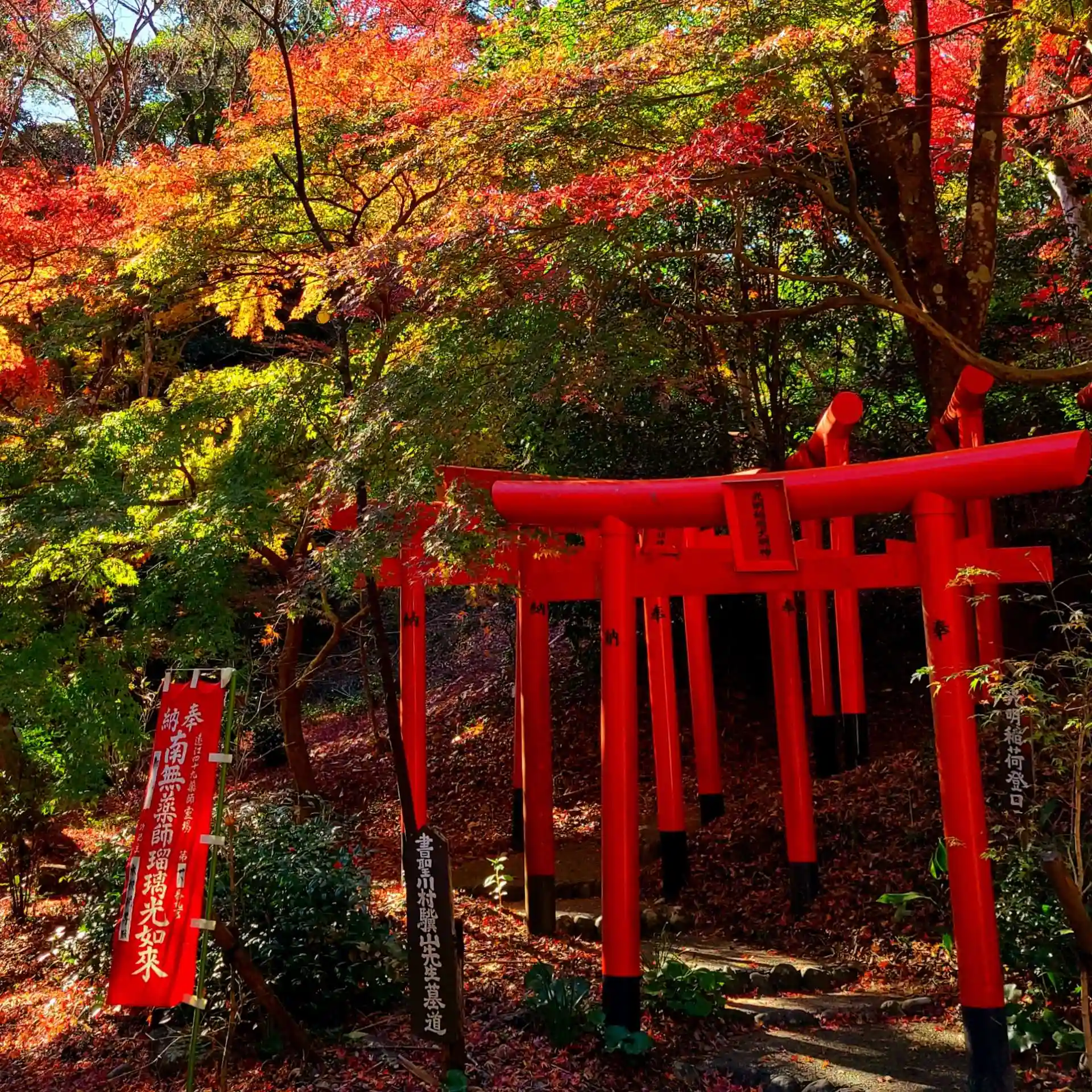 色づきを待ちわびていた参道の紅葉の拱廊、