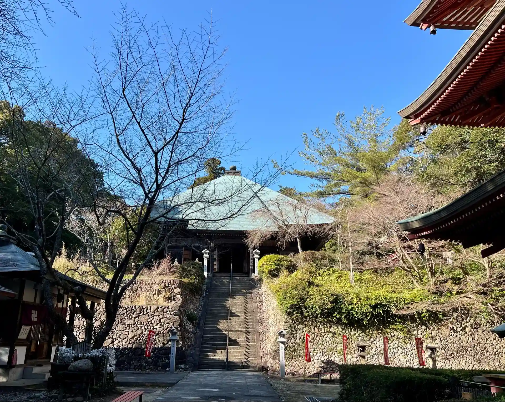 少し石段を登った所にある宝生殿や書院も趣深くて良いですが、遠州の原生林を奥へ奥へと登って行く薬師本堂への道のりが大変好みです。
