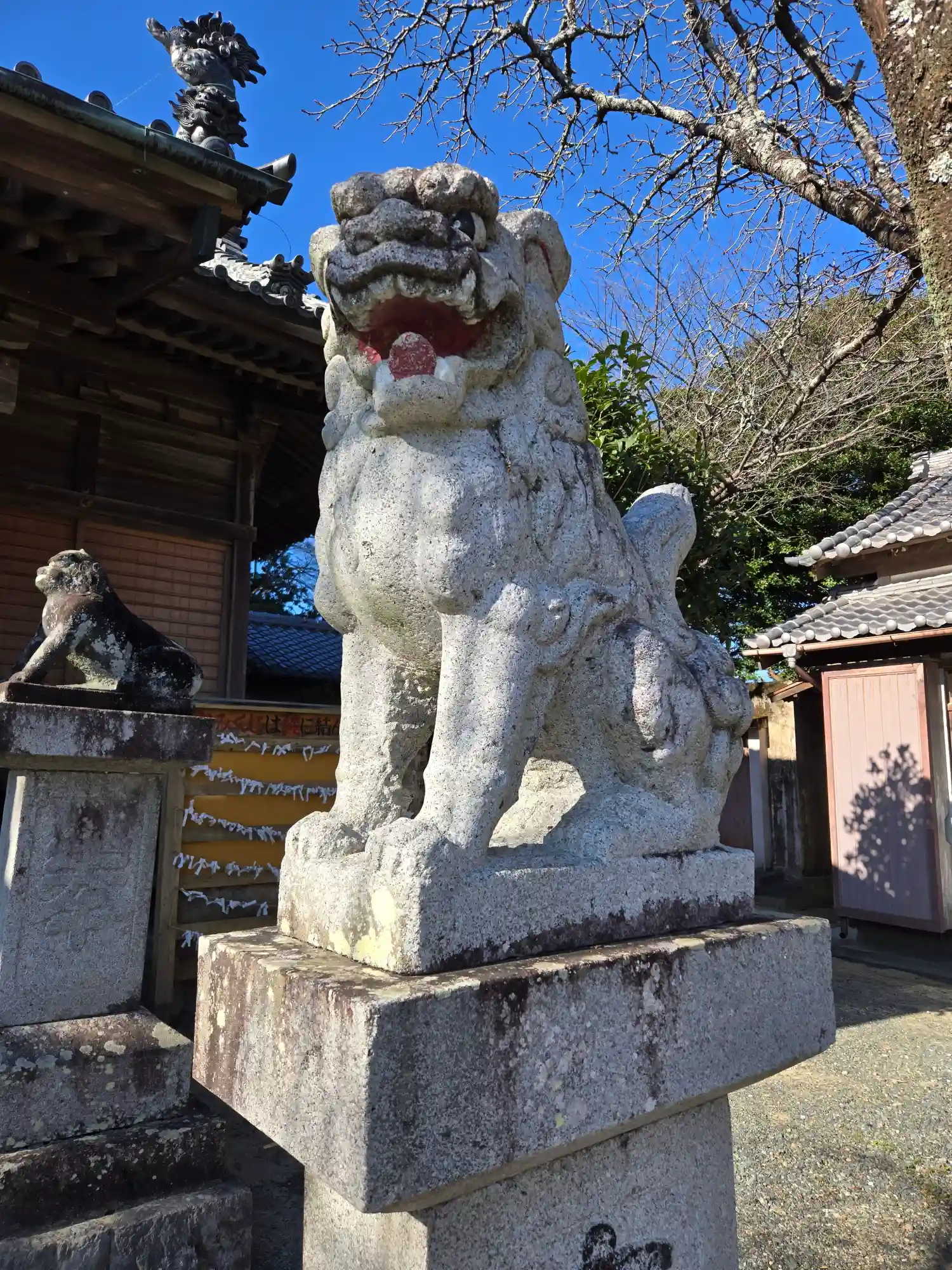 拝殿前右側の<狛犬>たち。