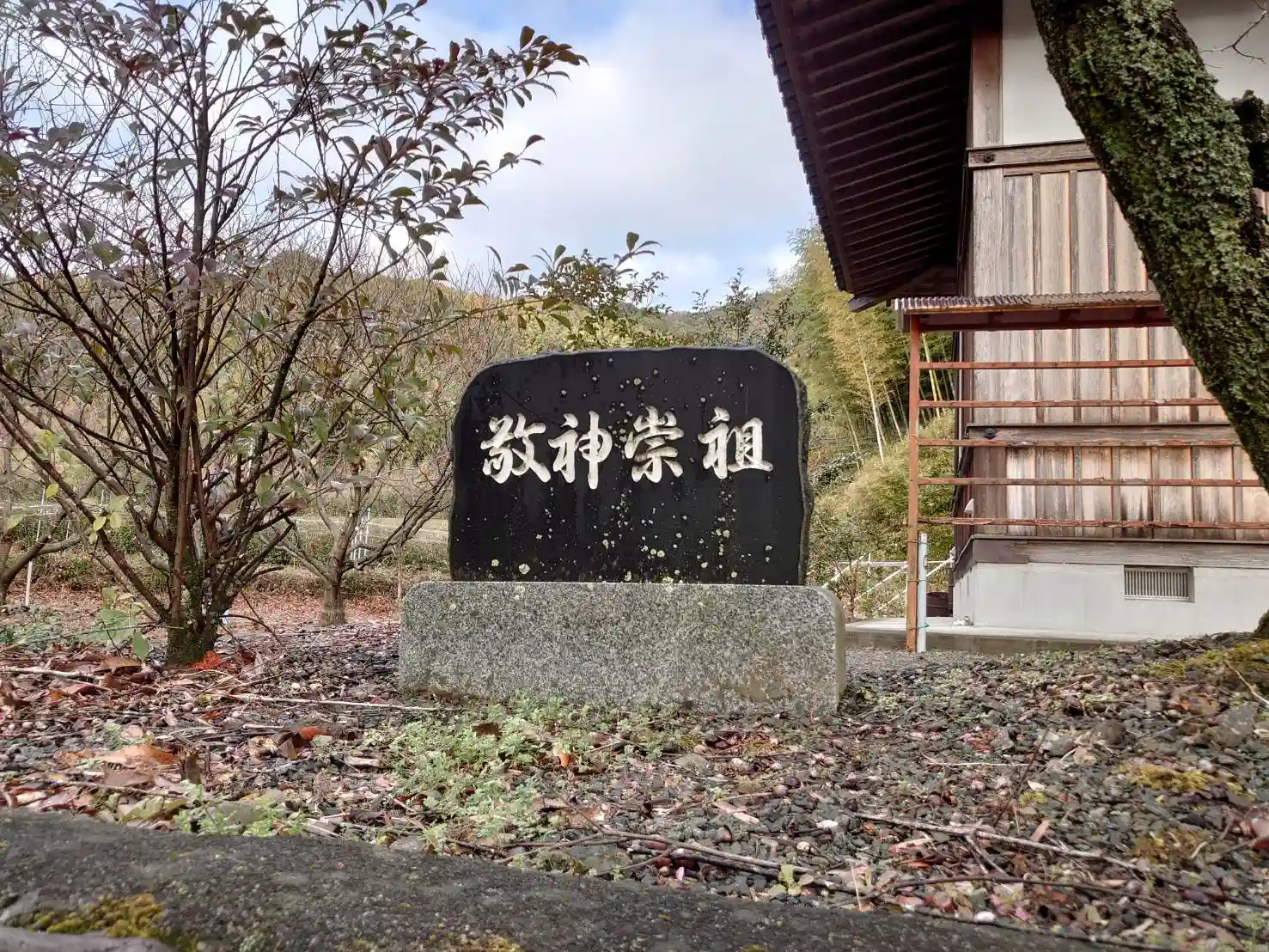 白い丸石の参道も、咲き始めの梅の花もとても素敵です。
