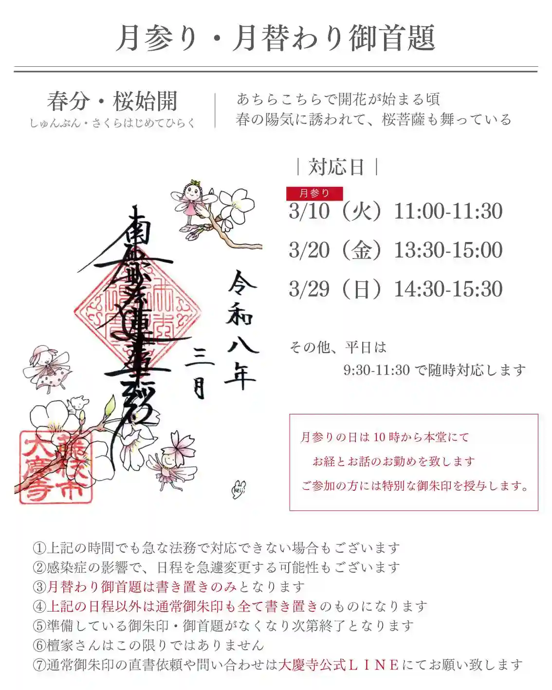3/10(火)11:00-11:30(月参り10:00~)