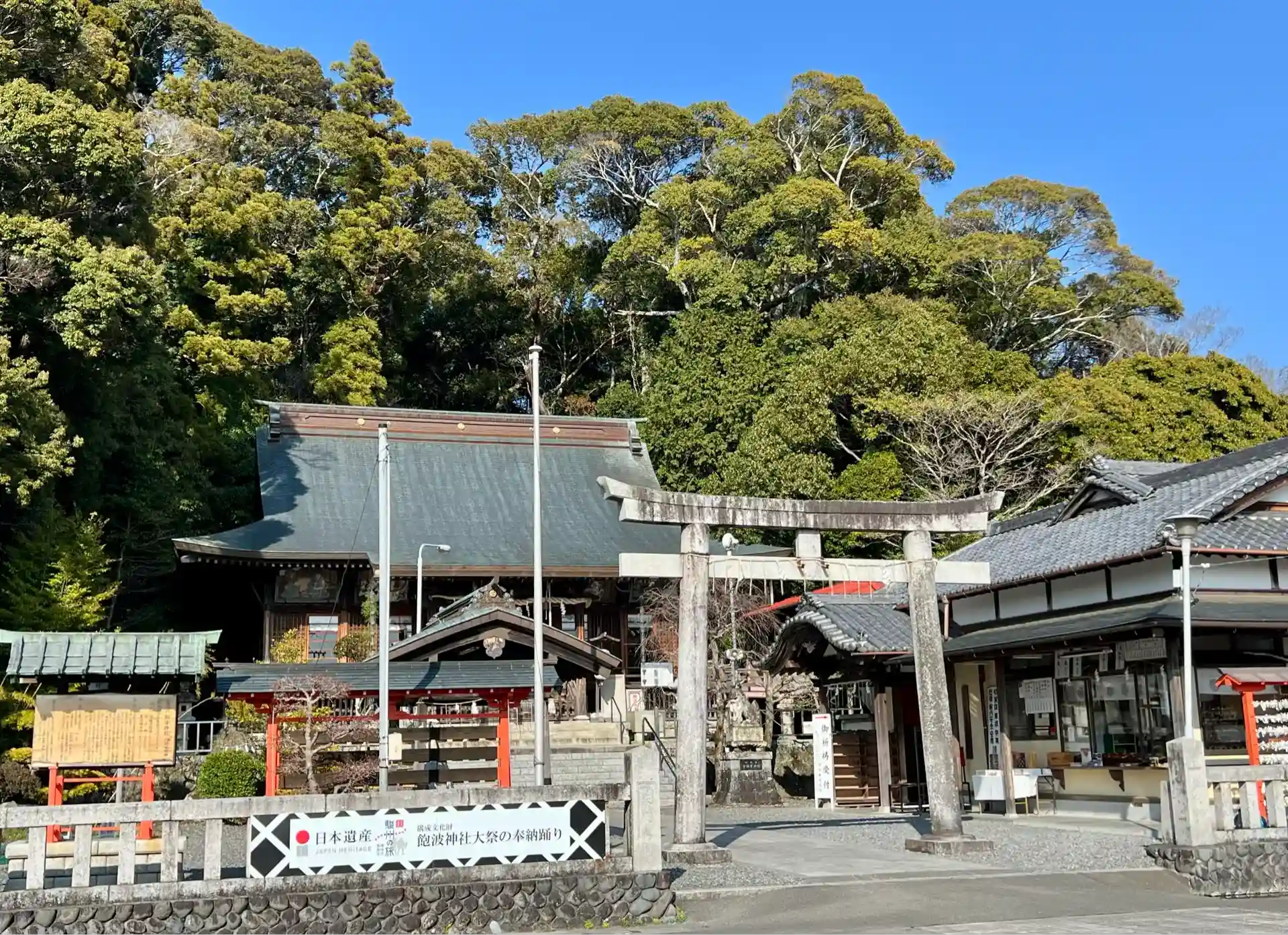 志田平野最古の神社として有名な飽波神社。