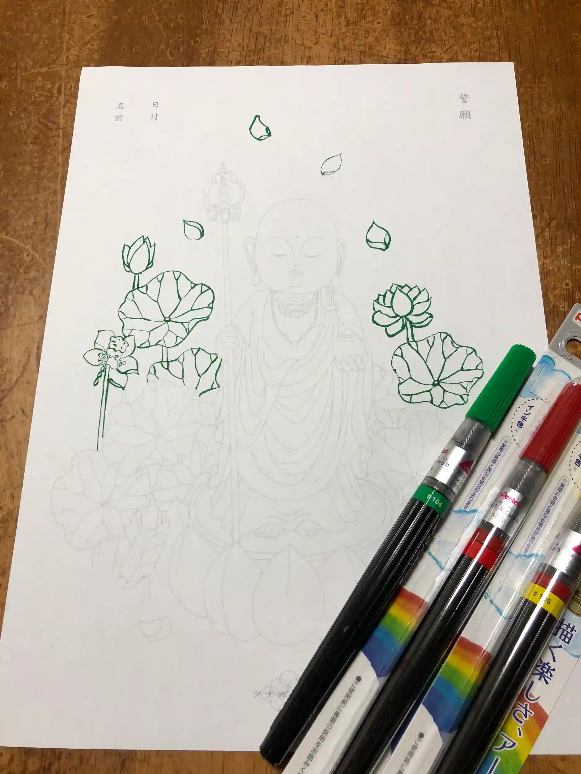 苦手な筆ペンですが、少しずつ慣れたいと思い、eisuiさんの写仏講座で教えて頂いたことを思い出しながら挑戦しています。